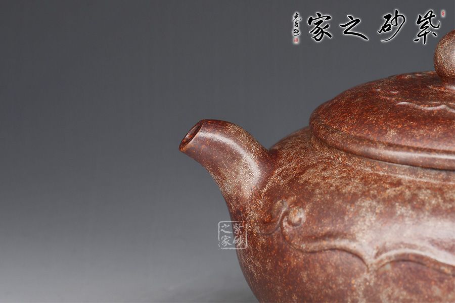 特點(diǎn):原礦因含緞泥、紅泥、紫泥等諸多共生礦,陶之后,于深沉之“橙紅色”底上,滿佈五彩斑斕的粗細(xì)、深淺之紅、黃星斑點(diǎn)。