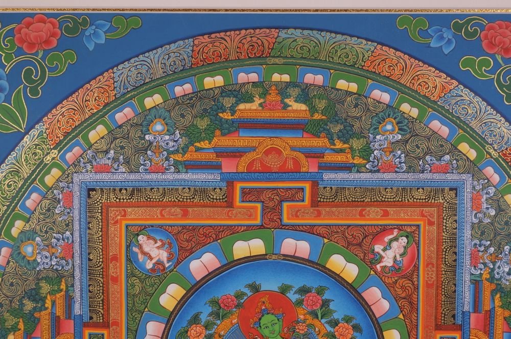| 唐卡是歷史的瑰寶,現已被例入國家非物質文化遺產名錄,得到了高度的重視和保護。同時由于顏料的珍稀、繪制周期長、工藝復雜大大增強了其珍藏價值。一幅好的作品可遇不可求,近年來唐卡已成為收藏界炙手可熱的藏品。 | 唐卡的形式便于攜帶,其內容體現了藏傳佛教的莊重、神圣、華貴,被稱為“移動的佛像”。同時也是修行者積累善業,追尋心靈的平靜與安寧的一個過程。 | 唐卡的內容包羅萬象,它以圖像的方式承載著藏族文化精髓,是藏族智慧的結晶,廣泛傳播了藏地的文化、歷史和宗教理論。 | 唐卡絢麗的色彩、流暢的線條、嚴謹的結構,都充滿著濃郁的高原和游牧民族風情,無疑是難得的藝術珍品。值得一提的是唐卡繪制顏料全部為天然礦物顏料,畫面效果艷麗,可以保存千年而不變色。 |