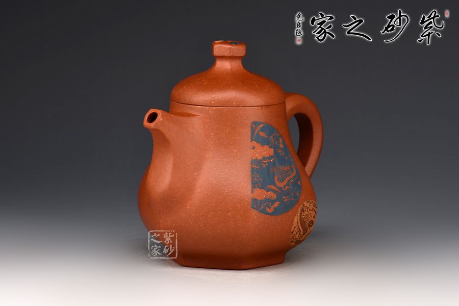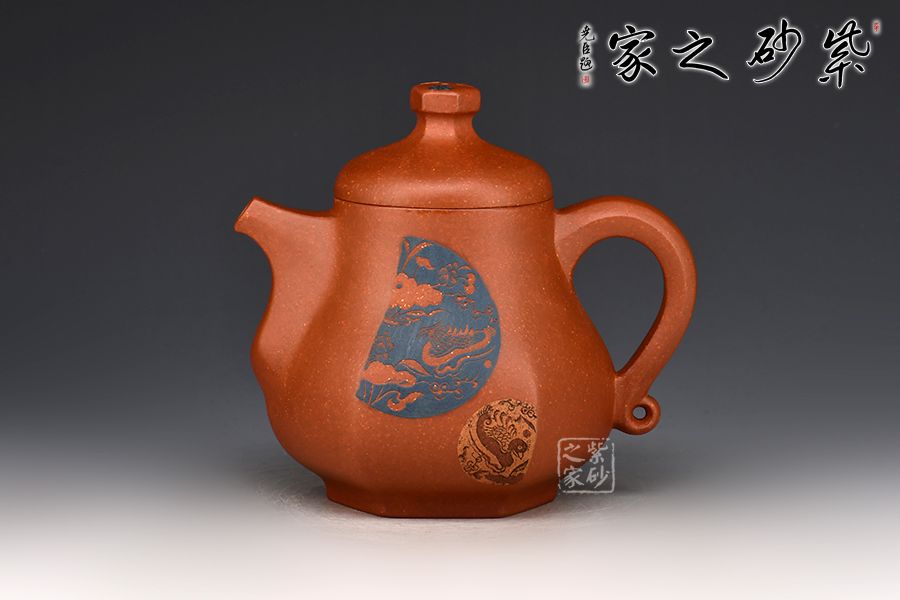 特點(diǎn):原礦因含緞泥、紅泥、紫泥等諸多共生礦,陶之后,于深沉之“橙紅色”底上,滿佈五彩斑斕的粗細(xì)、深淺之紅、黃星斑點(diǎn)。