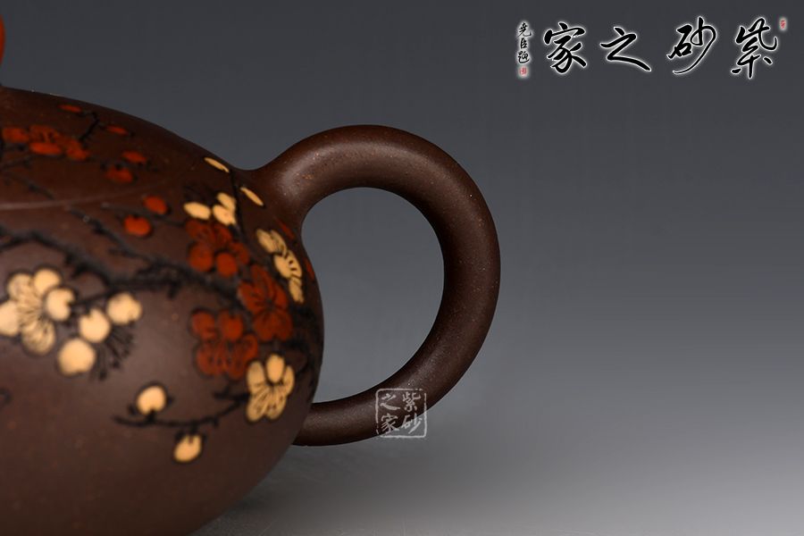 《祥云壺》、《迎春壺》、《勝算壺》看似平實,蘊含生活情趣,《茗香石瓢壺》傳統(tǒng)與現(xiàn)代結(jié)合的經(jīng)典之作,榮獲2002年上海工藝美術(shù)大師精品展銀獎?!兑黄芳t》、《爆》、《花婉》、《覓》、《高山流水》、《碩果》等雙色嵌泥工藝為特色的系列作品,以強烈的視覺感受、細膩的線條襯托,和諧對稱的造型比例,將紫砂陶藝與現(xiàn)代生活有機的結(jié)合演示得淋漓盡致,在壺藝收藏界引起不小的震動。其聲望直追其父,已有青出于藍而勝于藍之勢,成為宜興紫砂新秀中的佼佼者。