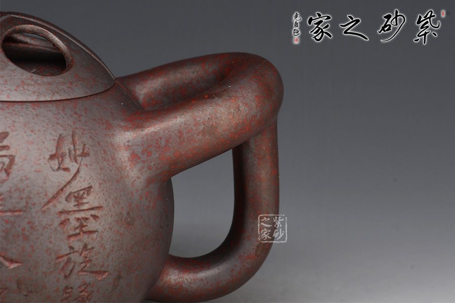 石紅泥性很強(qiáng),塑性很差,成品率極低,往往是求而不得,故成壺不易,雖極少有陶手能做,但熟悉泥性的還是完全可以做出相當(dāng)漂亮的作品,而且因是純石紅,所以料子含鐵量極高,燒成后接近鐵質(zhì)外表,盡顯古樸蒼桑的老味之美,豐富的鐵離子對(duì)人們的健康極為有益,是名符其實(shí)的中國(guó)鐵壺!比日本鐵壺在原料上,工藝難度上更勝一籌!因?yàn)槭忻嫔铣善穳貥O少,所以上手的壺友不多,也因此一直蒙上神秘的面紗。