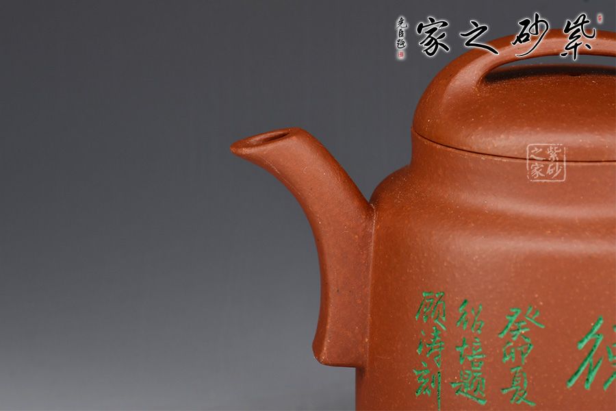 特點:塊狀中有青綠色的"雞眼"、"貓眼"、色呈偏紫泛青,細(xì)而純正, 十分稀少.燒成的壺呈現(xiàn) 紅豬肝色,燒成顏色具體要看礦料的成分構(gòu)成和燒成溫度。