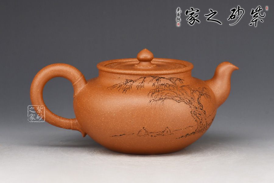 泥性:原礦因含緞泥、紅泥、紫泥等諸多共生礦,陶之后,于深沉之“橙紅色”底上,滿佈五彩斑斕的粗細、深淺之紅、黃星斑點。