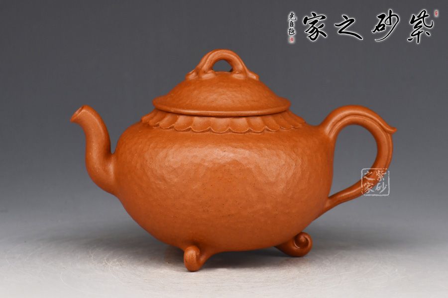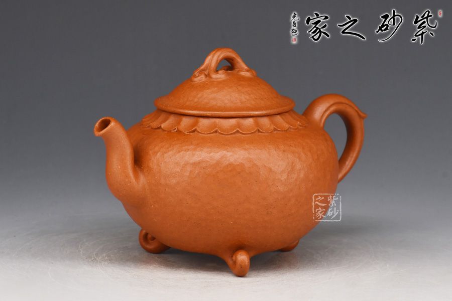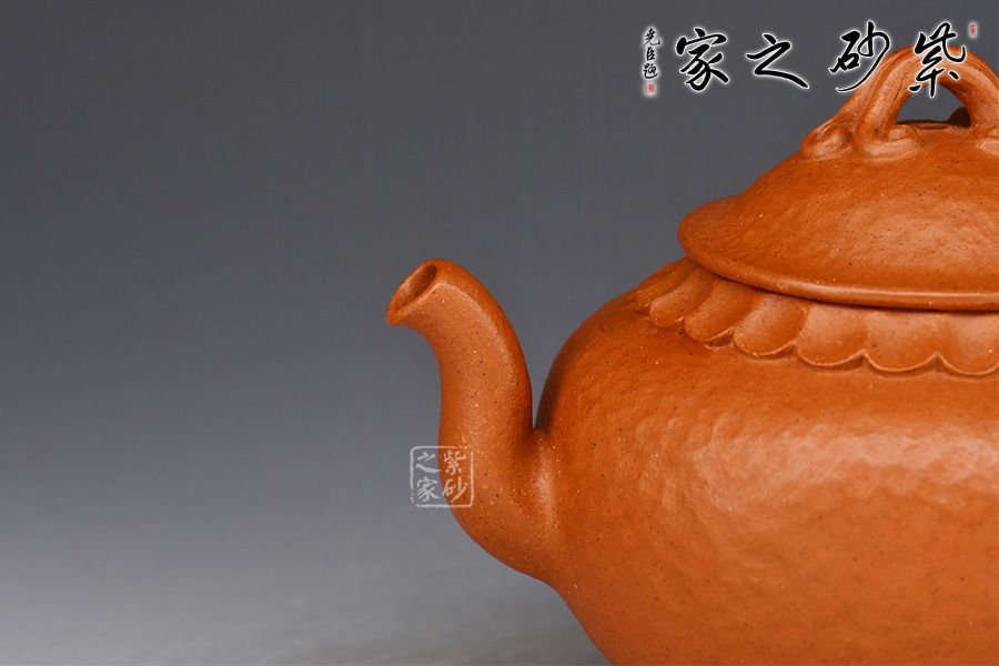 特點:原礦因含緞泥、紅泥、紫泥等諸多共生礦,陶之后,于深沉之“橙紅色”底上,滿佈五彩斑斕的粗細(xì)、深淺之紅、黃星斑點。