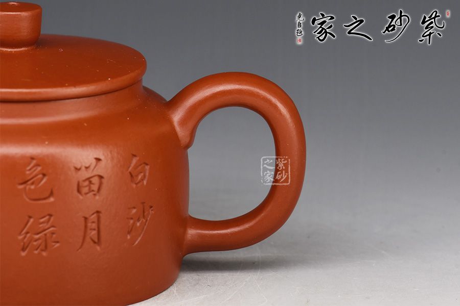 特點:質(zhì)感綿密、緊實細緻,持之扎實沉重、紅潤豔麗,泥中極品,無以倫比;泥胚含少許原礦顆粒,沖淋熱水后色變極大,呈紅中帶紫,養(yǎng)壺易現(xiàn)“包漿”之美。