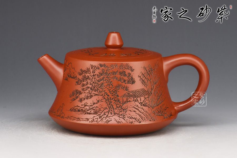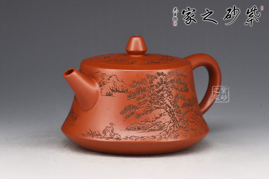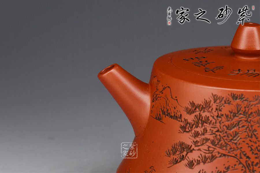 特點:質(zhì)感綿密、緊實細緻,持之扎實沉重、紅潤豔麗,泥中極品,無以倫比;泥胚含少許原礦顆粒,沖淋熱水后色變極大,呈紅中帶紫,養(yǎng)壺易現(xiàn)“包漿”之美。