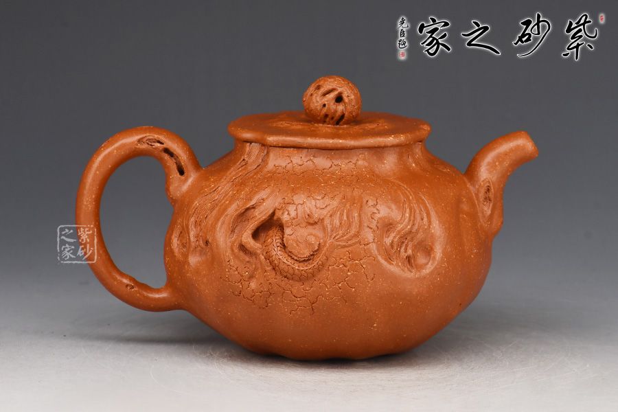 泥性:原礦因含緞泥、紅泥、紫泥等諸多共生礦,陶之后,于深沉之“橙紅色”底上,滿佈五彩斑斕的粗細(xì)、深淺之紅、黃星斑點(diǎn)。