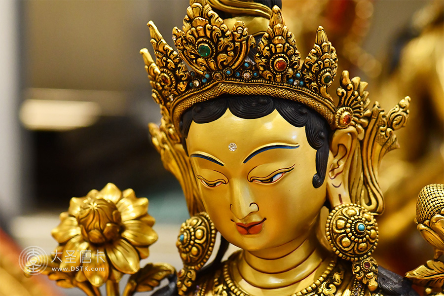綠度母,藏語(yǔ)叫“卓姜”,是從觀音菩薩的眼淚中化現(xiàn)出來(lái)的,所以最慈悲。綠度母為所有度母之主尊,總攝其余二十尊化身之所有功德。因其救度之迅速、摧滅魔業(yè)之勇猛,故又稱作“救度速勇母”。
