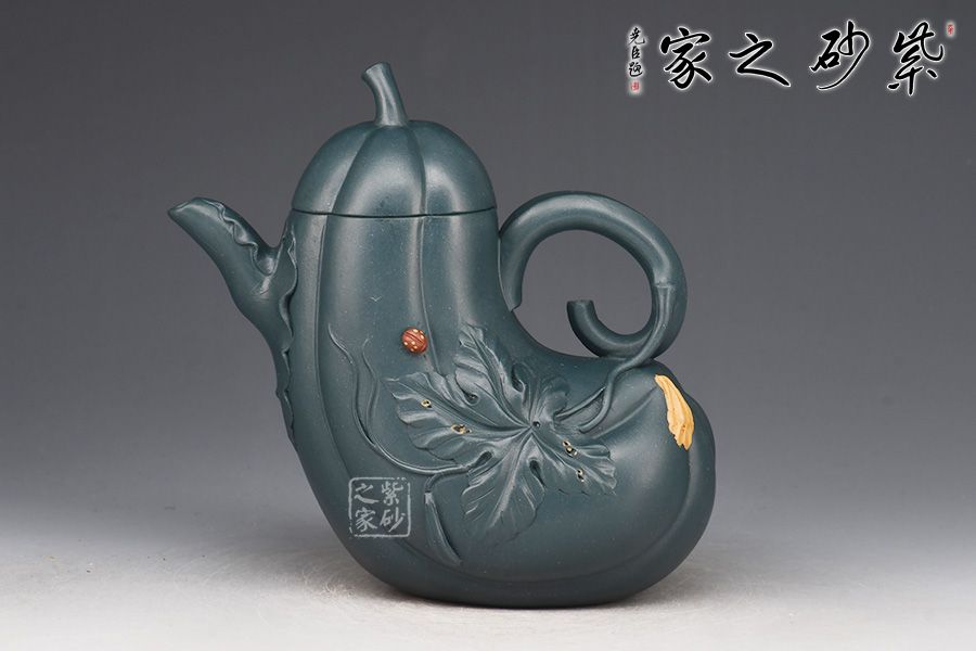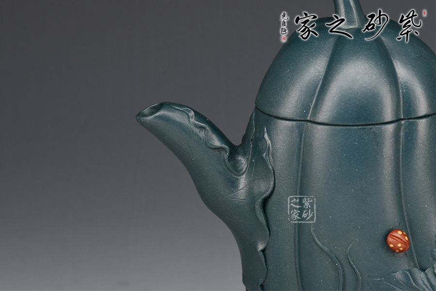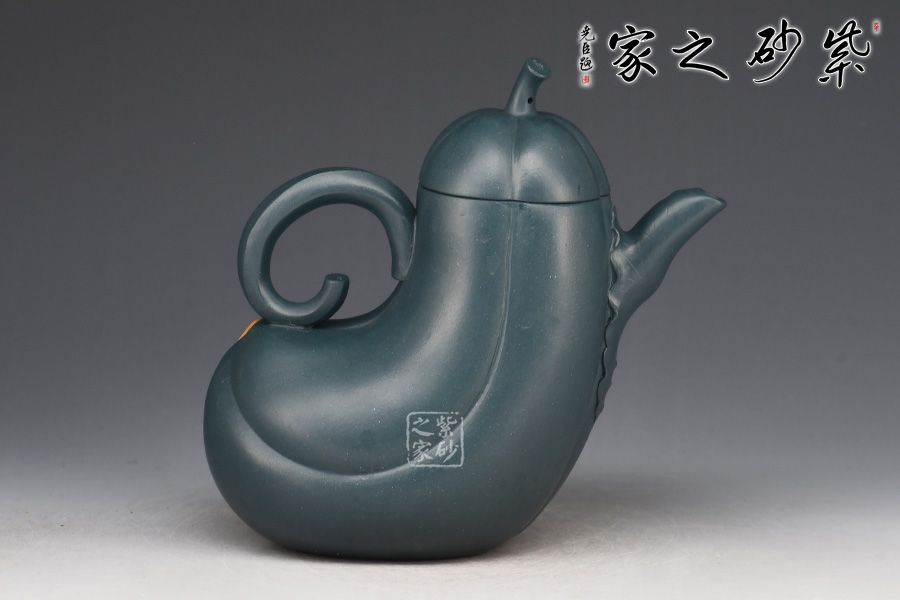 特點:泥色特異,青藍色中略泛綠光,清秀獨特;稍一泡養(yǎng),色調(diào)更形穩(wěn)實,溫潤透明,變化甚巨,玩賞深具成就感。