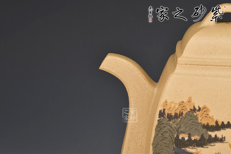 泥性:感甜嫩綿密,質(zhì)堅而溫潤,呈近田黃色調(diào),為江蘇宜興趙莊山系朱泥礦~黃石黃之共生礦,經(jīng)挑揀練製而成,因含鐵量只達(dá)6%左右,致陶之后呈“金田黃色”。