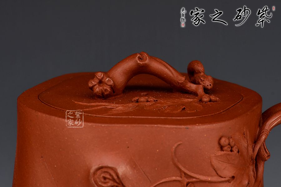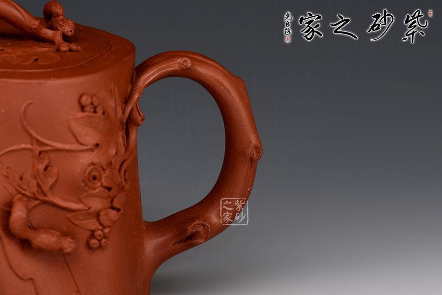 特點:週身密佈粗獷顆粒,形成十分特殊風格;紅潤又具 砂感,器身明顯成雙氣孔結(jié)構(gòu),空氣對流順暢,別于一般陶器;質(zhì)樸拙雅,美冠群倫,人氣之佳歷數(shù)百年而不衰。