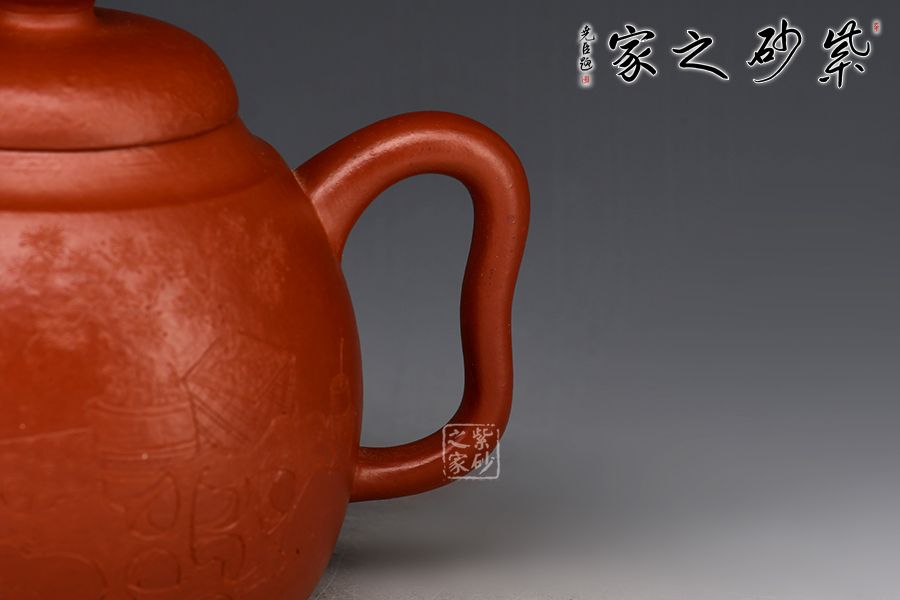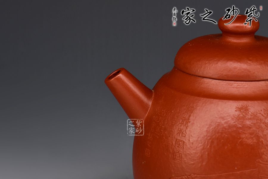 特點:質(zhì)感綿密、緊實細緻,持之扎實沉重、紅潤豔麗,泥中極品,無以倫比;泥胚含少許原礦顆粒,沖淋熱水后色變極大,呈紅中帶紫,養(yǎng)壺易現(xiàn)“包漿”之美。