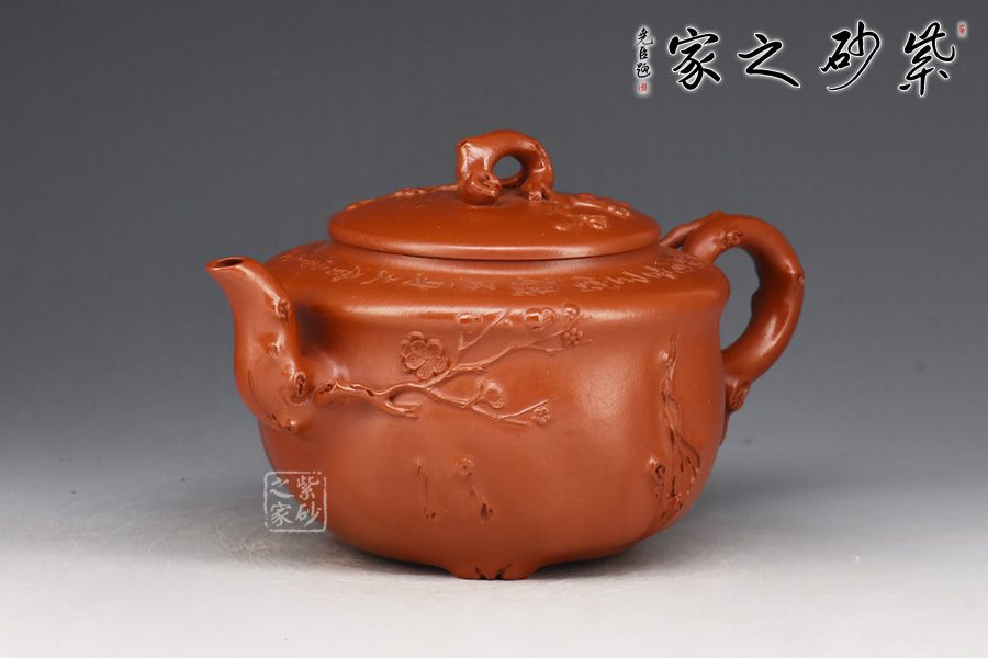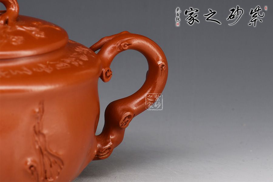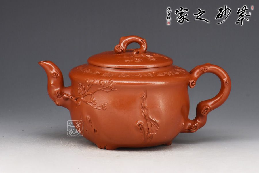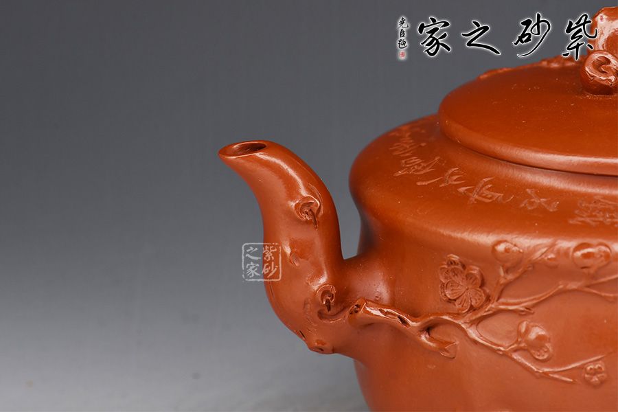 特點:質(zhì)感綿密、緊實細緻,持之扎實沉重、紅潤豔麗,泥中極品,無以倫比;泥胚含少許原礦顆粒,沖淋熱水后色變極大,呈紅中帶紫,養(yǎng)壺易現(xiàn)“包漿”之美。