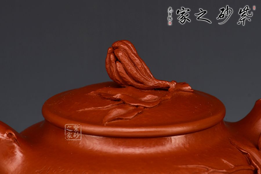 特點:質(zhì)感綿密、緊實細緻,持之扎實沉重、紅潤豔麗,泥中極品,無以倫比;泥胚含少許原礦顆粒,沖淋熱水后色變極大,呈紅中帶紫,養(yǎng)壺易現(xiàn)“包漿”之美。