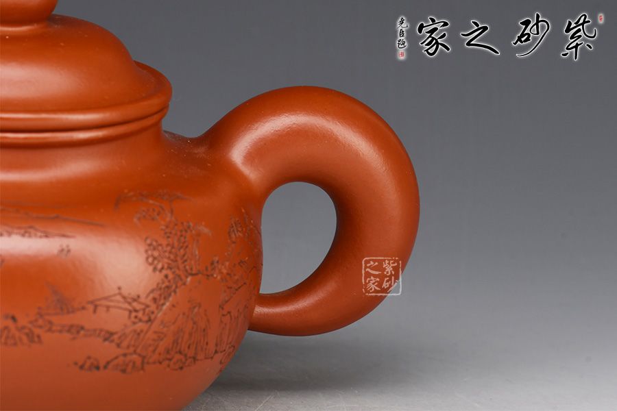 特點(diǎn):質(zhì)感綿密、緊實(shí)細(xì)緻,持之扎實(shí)沉重、紅潤(rùn)豔麗,泥中極品,無(wú)以倫比;泥胚含少許原礦顆粒,沖淋熱水后色變極大,呈紅中帶紫,養(yǎng)壺易現(xiàn)“包漿”之美。