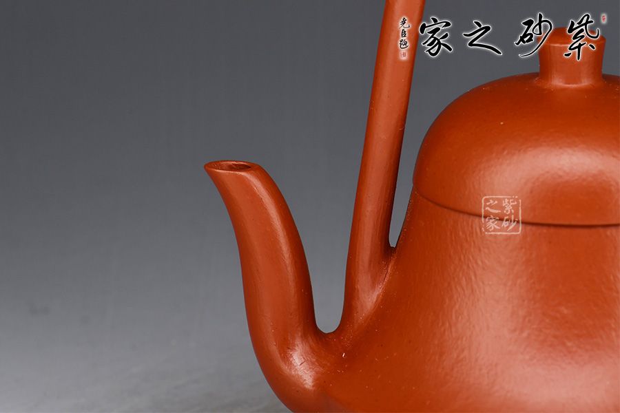 特點:質(zhì)感綿密、緊實細緻,持之扎實沉重、紅潤豔麗,泥中極品,無以倫比;泥胚含少許原礦顆粒,沖淋熱水后色變極大,呈紅中帶紫,養(yǎng)壺易現(xiàn)“包漿”之美。