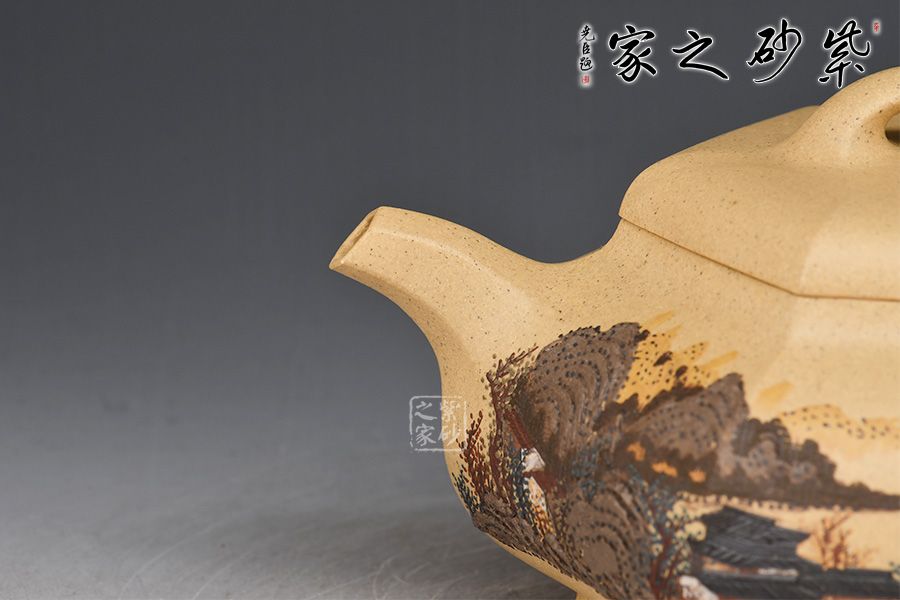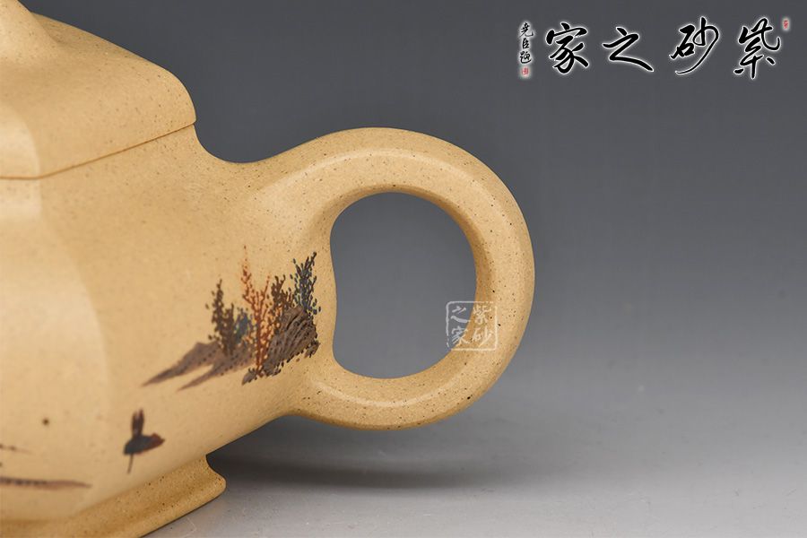 泥性:感甜嫩綿密,質(zhì)堅而溫潤,呈近田黃色調(diào),為江蘇宜興趙莊山系朱泥礦~黃石黃之共生礦,經(jīng)挑揀練製而成,因含鐵量只達(dá)6%左右,致陶之后呈“金田黃色”。