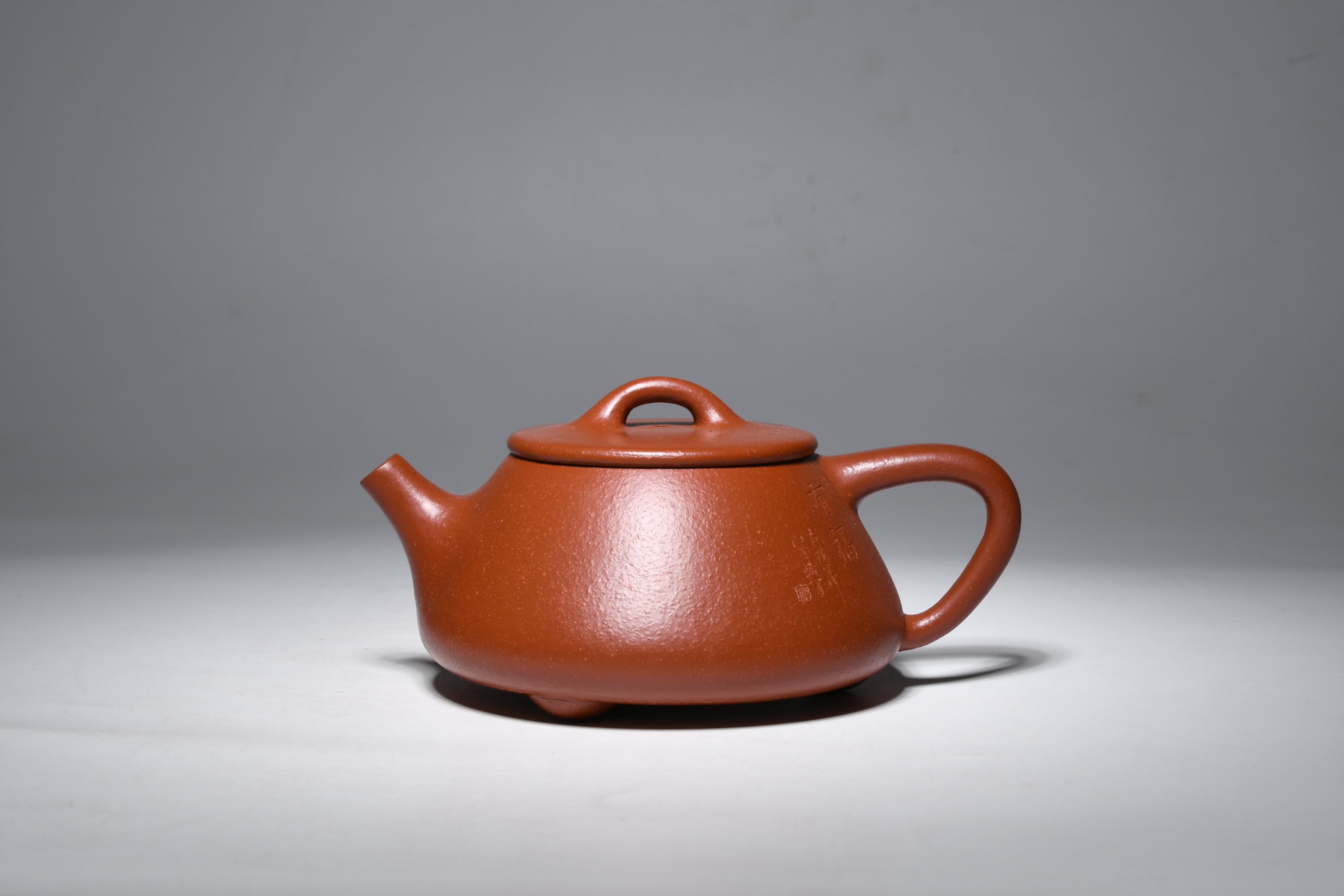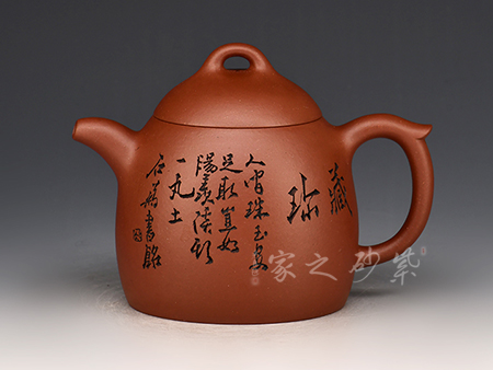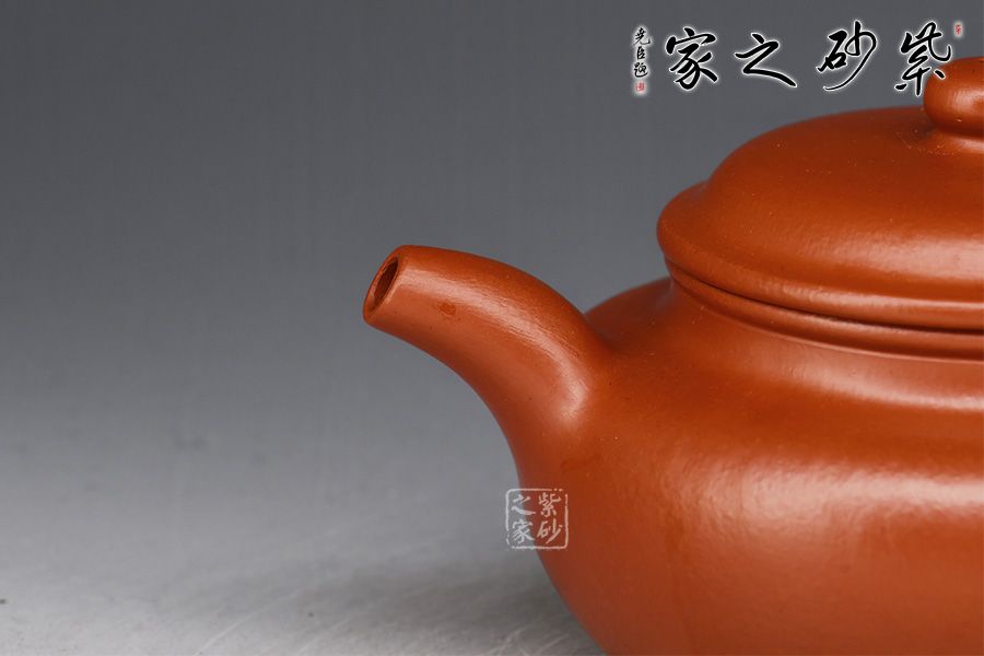 特點:質(zhì)感綿密、緊實細(xì)緻,持之扎實沉重、紅潤豔麗,泥中極品,無以倫比;泥胚含少許原礦顆粒,沖淋熱水后色變極大,呈紅中帶紫,養(yǎng)壺易現(xiàn)“包漿”之美。