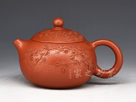特點:質(zhì)感綿密、緊實細(xì)緻,持之扎實沉重、紅潤豔麗,泥中極品,無以倫比;泥胚含少許原礦顆粒,沖淋熱水后色變極大,呈紅中帶紫,養(yǎng)壺易現(xiàn)“包漿”之美。