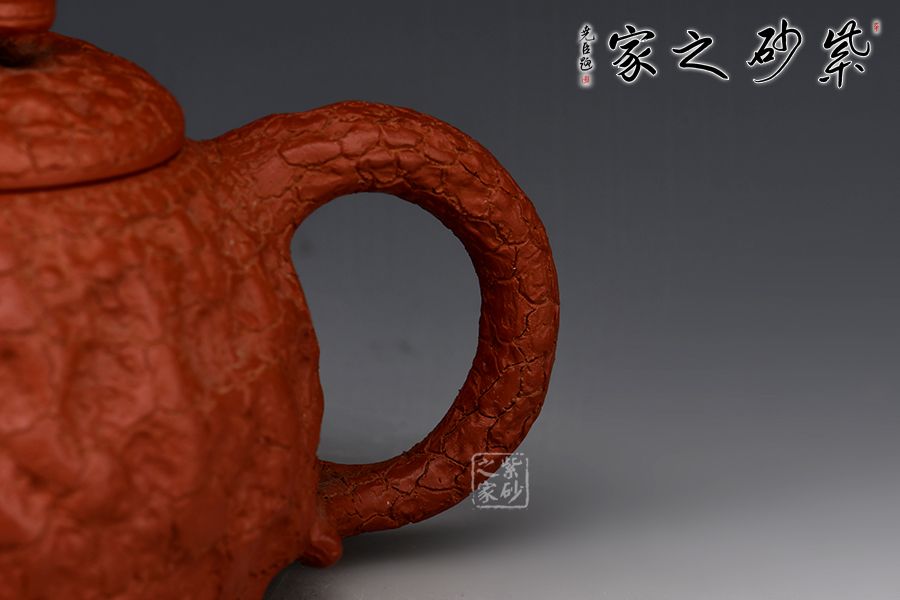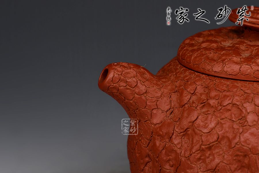特點(diǎn):質(zhì)感綿密、緊實(shí)細(xì)緻,持之扎實(shí)沉重、紅潤(rùn)豔麗,泥中極品,無(wú)以倫比;泥胚含少許原礦顆粒,沖淋熱水后色變極大,呈紅中帶紫,養(yǎng)壺易現(xiàn)“包漿”之美。