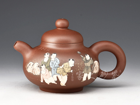 光貨離不開裝飾。俗話說(shuō)“壺隨字貴,字隨壺傳”:光壺不刻字,就是一把光壺;壺上面刻了大師、名人的字,一把壺的含金量就高了,收藏價(jià)值就更高,升值潛力就更大。王福君與中國(guó)工藝美術(shù)大師譚泉海合作最多,其次是徐安碧、鮑志強(qiáng)、毛國(guó)強(qiáng)(均為中國(guó)工藝美術(shù)大師、中國(guó)陶瓷藝術(shù)大師)。
