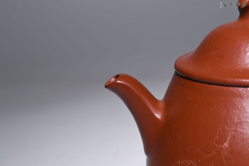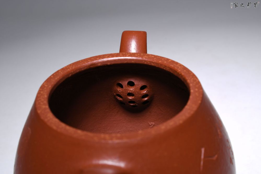 特點:質(zhì)感綿密、緊實細(xì)緻,持之扎實沉重、紅潤豔麗,泥中極品,無以倫比;泥胚含少許原礦顆粒,沖淋熱水后色變極大,呈紅中帶紫,養(yǎng)壺易現(xiàn)“包漿”之美。