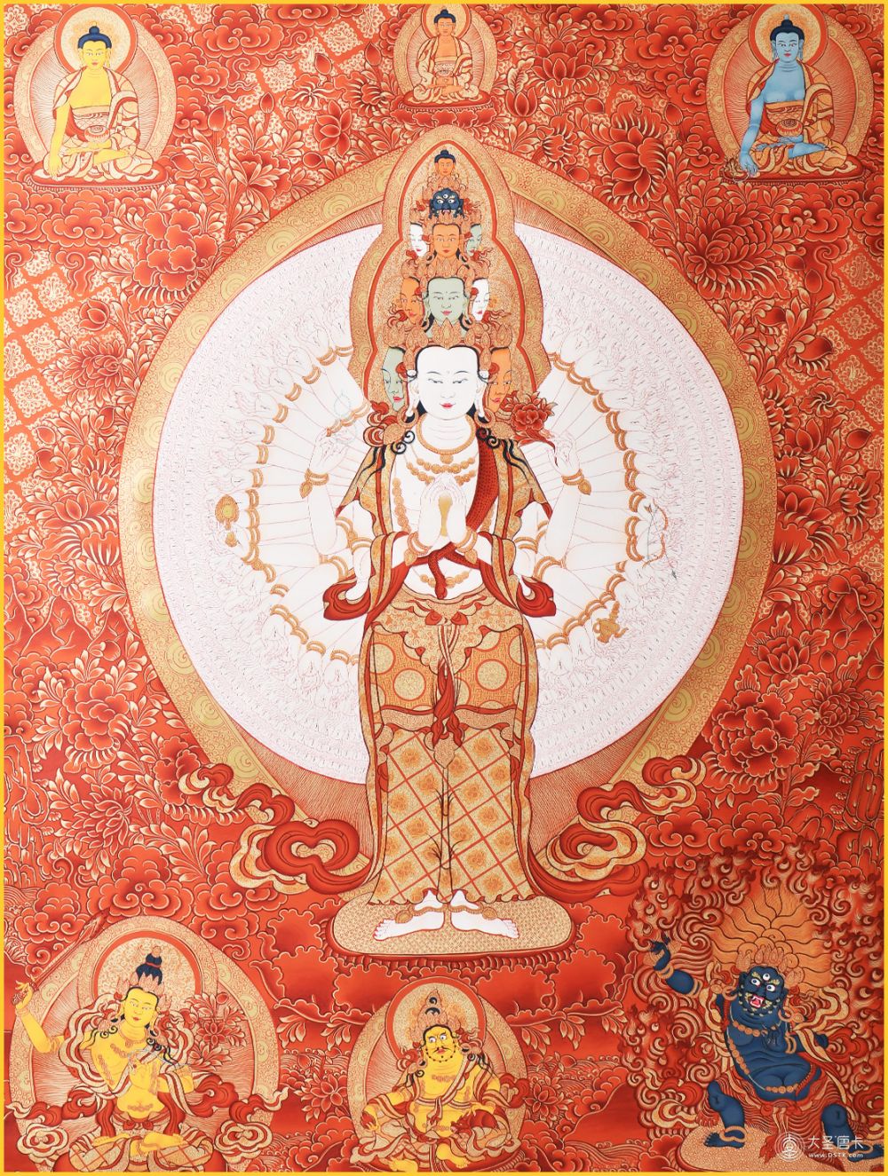 產(chǎn)地:熱貢 工藝:紅唐 創(chuàng)作年份: 題材:千手觀音 繪制時間:0日 尺寸:70*100cm 裝裱: 材質: 使用場地:走廊