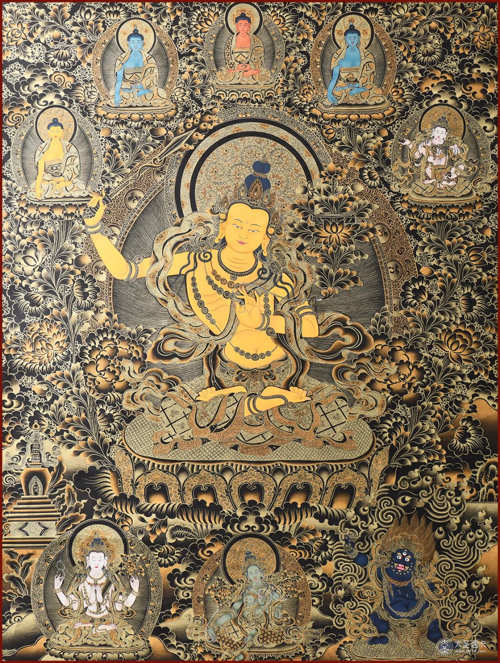 產(chǎn)地:熱貢 工藝:黑金 創(chuàng)作年份: 題材:文殊菩薩 繪制時(shí)間:0日 尺寸:70*100cm 裝裱: 材質(zhì): 使用場(chǎng)地:走廊