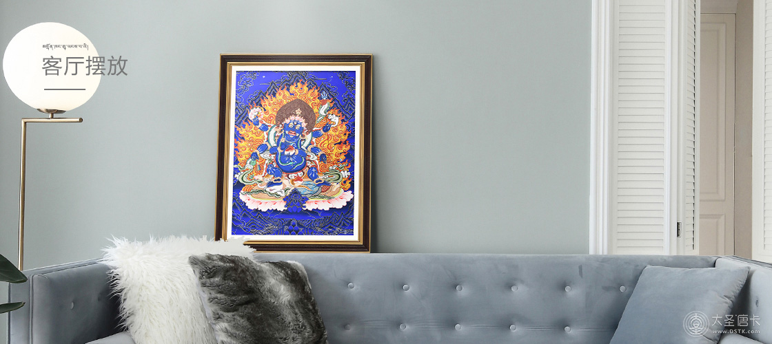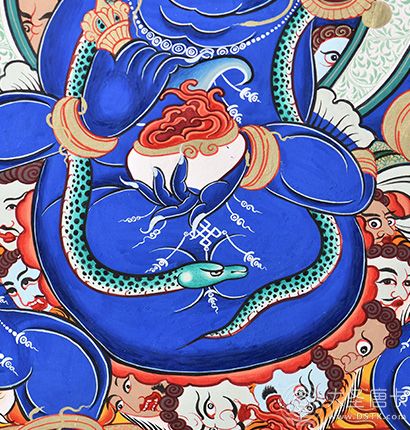 產(chǎn)地:熱貢 工藝:藍(lán)唐 創(chuàng)作年份: 題材:瑪哈嘎拉 繪制時間:0日 尺寸:60*80cm 裝裱: 材質(zhì): 使用場地:走廊