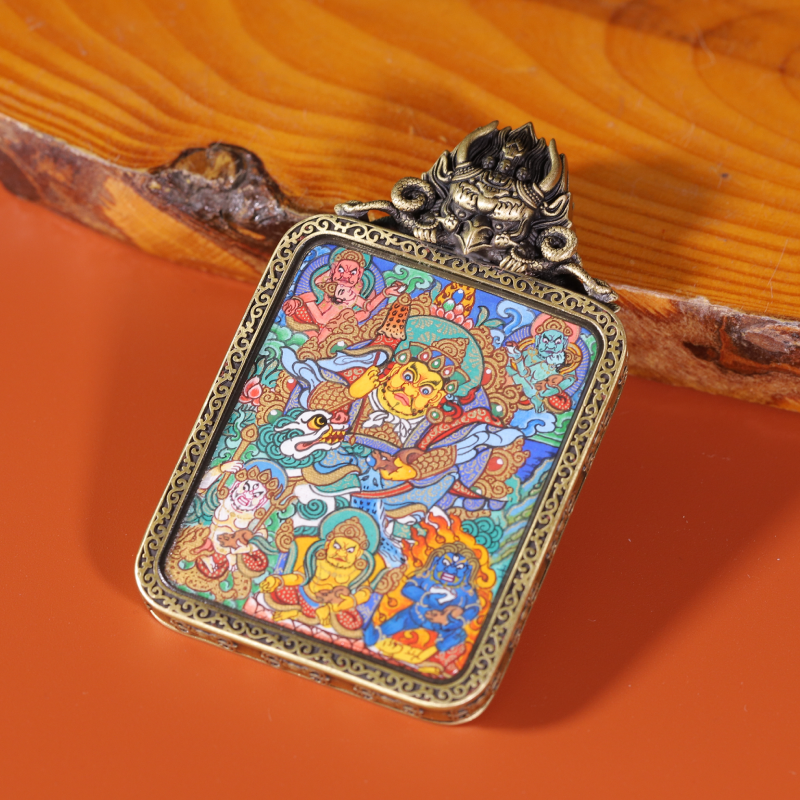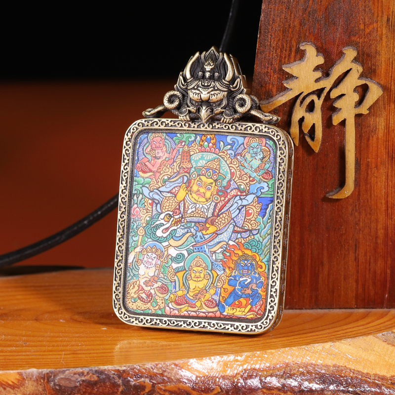 產(chǎn)地:熱貢 工藝: 創(chuàng)作年份:2023 題材:財(cái)寶天王 繪制時(shí)間:18日 尺寸:4*5cm 裝裱:鏡片 材質(zhì):藏綿布 使用場(chǎng)地:隨身佩戴