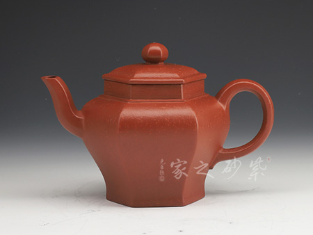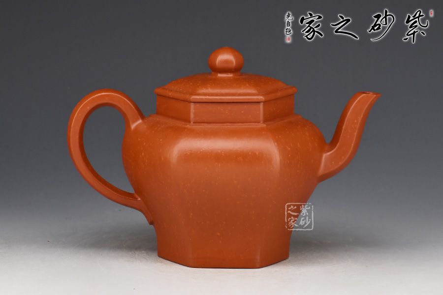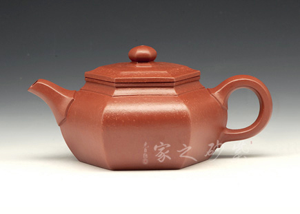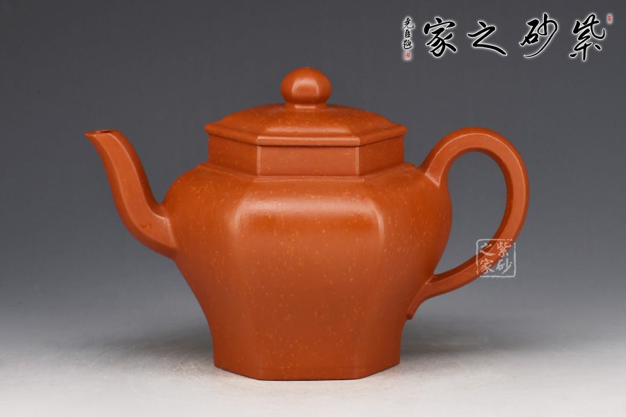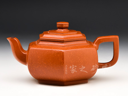 朱泥是原礦呈金黃色或淺黃綠色的紅泥,明代稱“石黃泥”,清代稱“朱泥”。原礦深埋于宜興丁山鎮(zhèn)趙莊山嫩泥礦層的底部,外觀呈咖啡黑色,煉制成泥后稱“朱泥”。用熱水沖淋朱泥壺,立展嬌艷的鮮紅色,氤氳中有紫光游移,泡養(yǎng)包漿后紅色沉穩(wěn)。