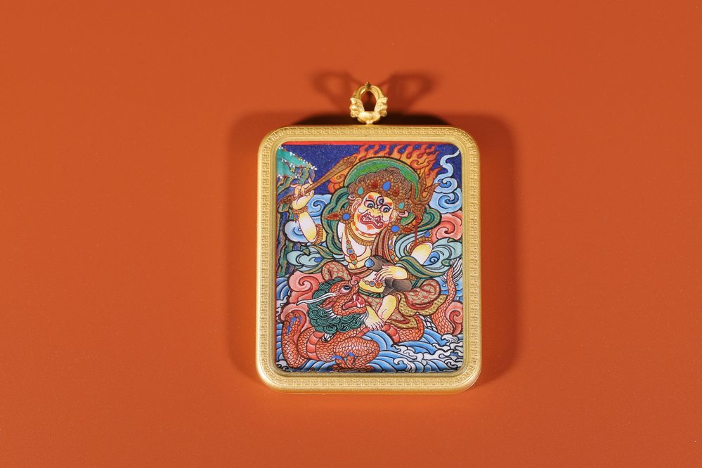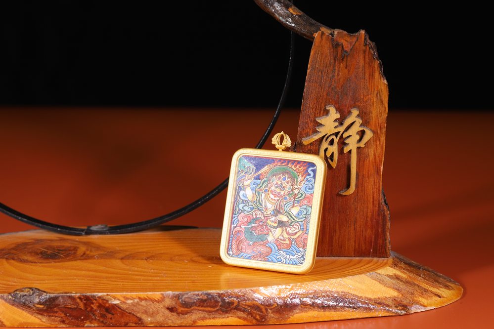 產地:熱貢 工藝: 創作年份:2023 題材:白財神 繪制時間:20日 尺寸:5*4cm 裝裱:鏡片 材質: 使用場地:隨身佩戴