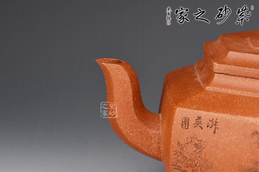 泥性:原礦因含緞泥、紅泥、紫泥等諸多共生礦,陶之后,于深沉之“橙紅色”底上,滿佈五彩斑斕的粗細(xì)、深淺之紅、黃星斑點(diǎn)。