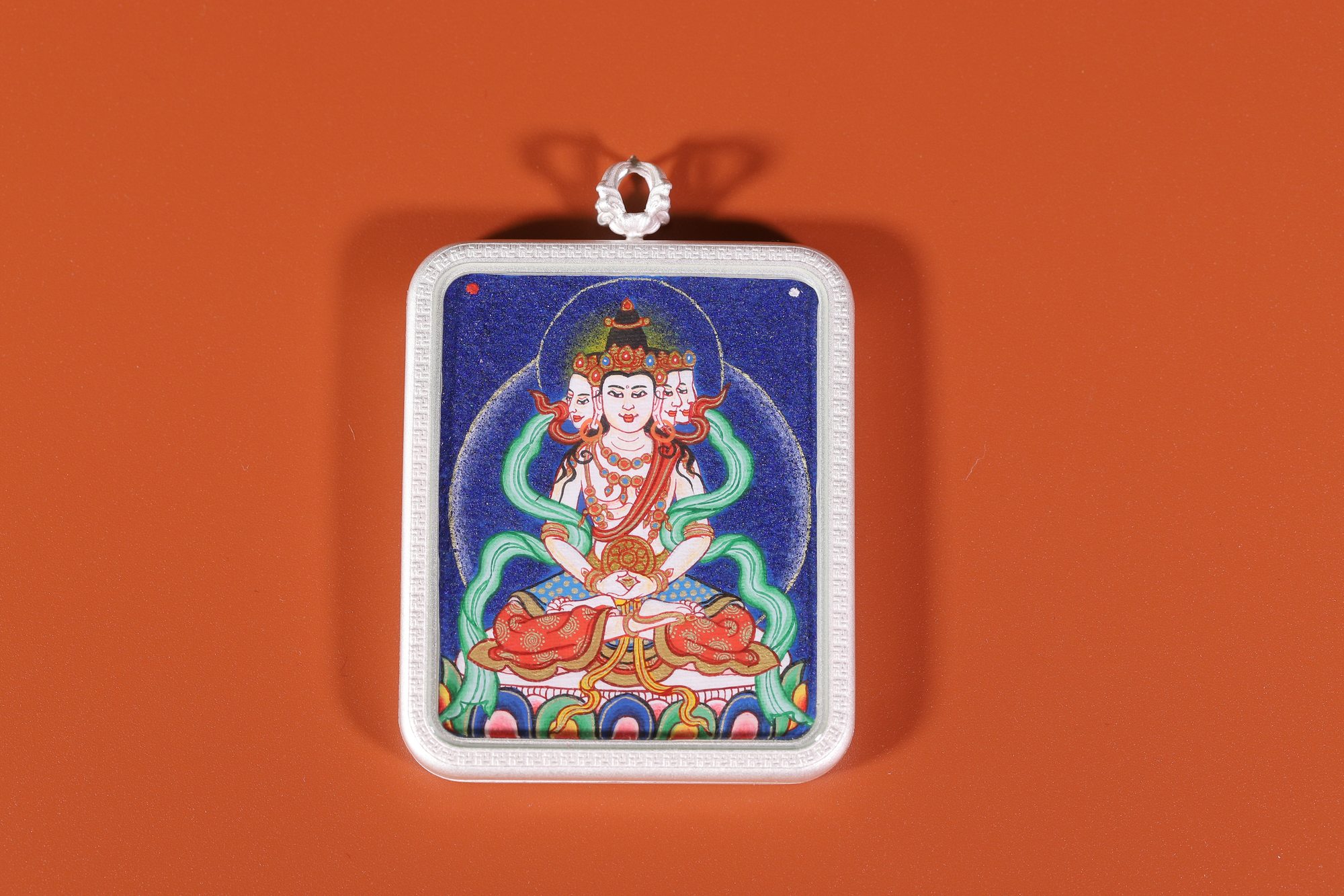 產(chǎn)地:熱貢 工藝: 創(chuàng)作年份:2023 題材:大日如來 繪制時間:15日 尺寸:4*5cm 裝裱:鏡片 材質:藏綿布 使用場地:隨身佩戴