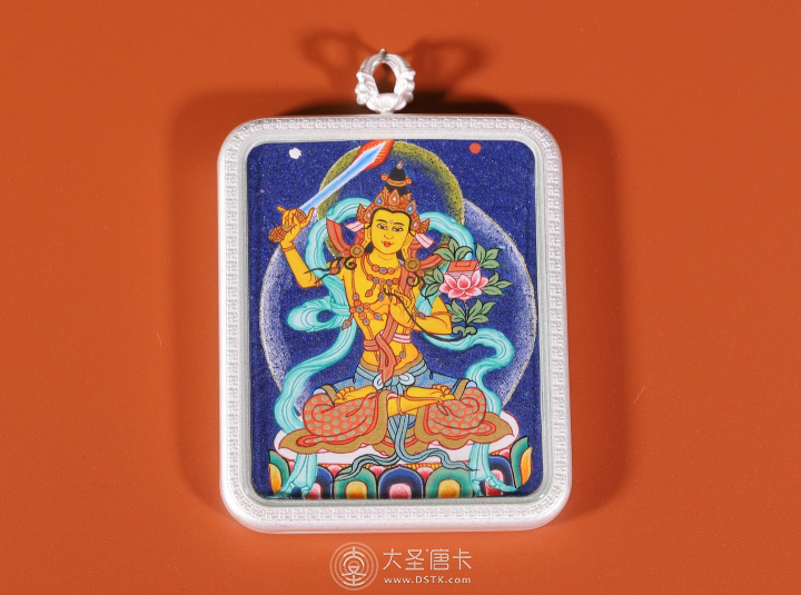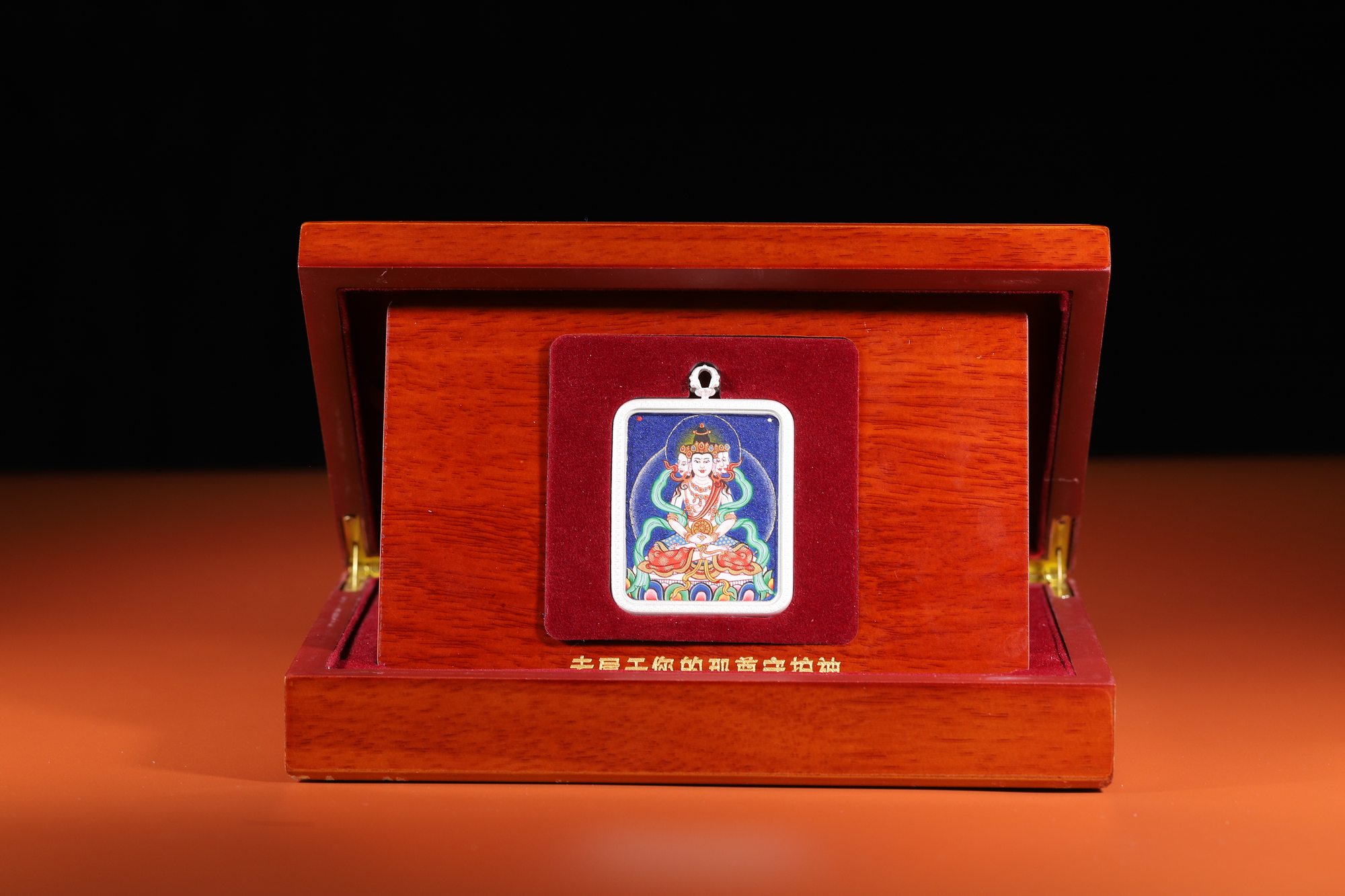 產(chǎn)地:熱貢 工藝: 創(chuàng)作年份:2023 題材:普賢菩薩 繪制時(shí)間:15日 尺寸:4*5*5cm 裝裱:鏡片 材質(zhì):藏綿布 使用場(chǎng)地:隨身佩戴