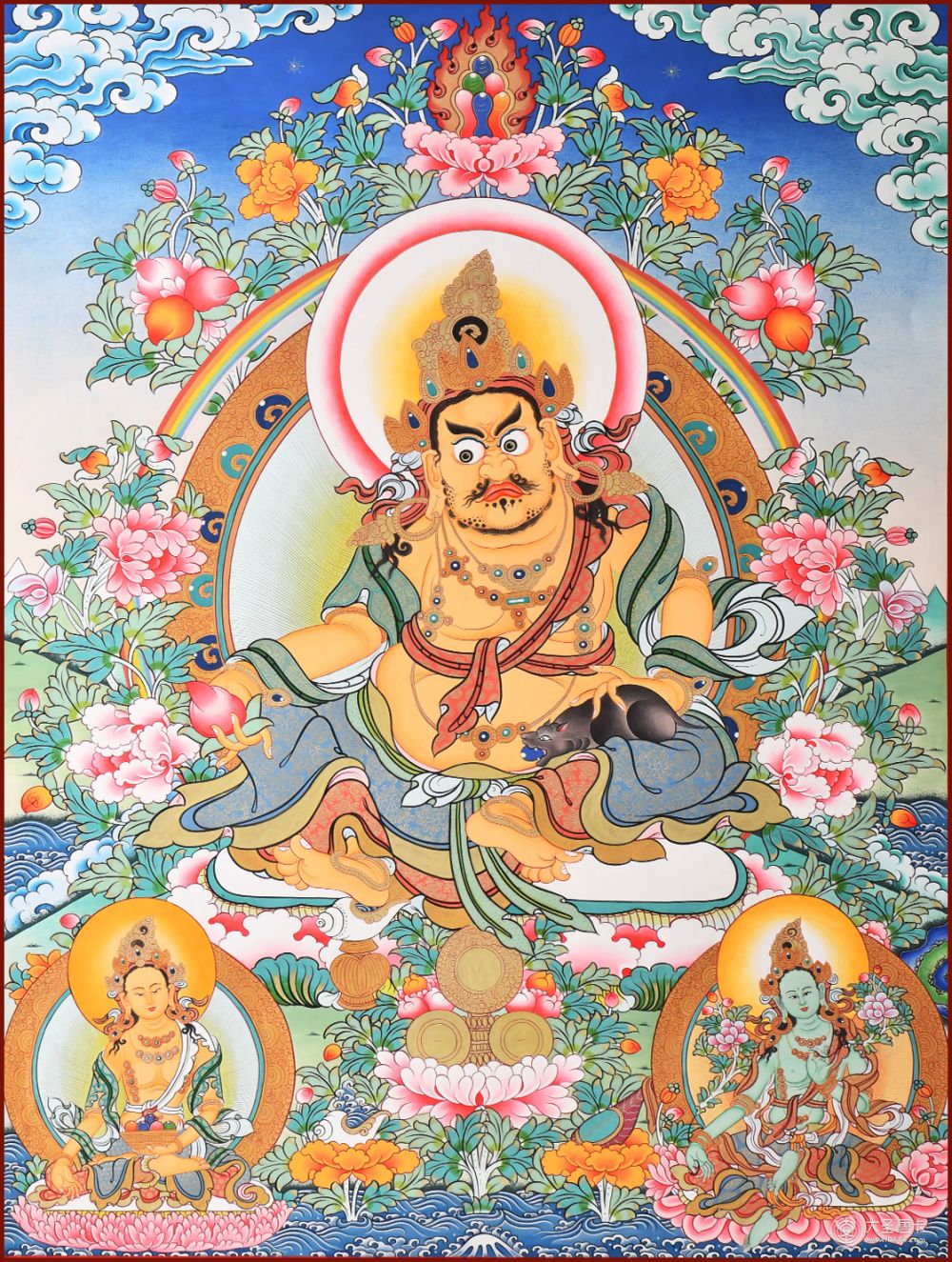 產(chǎn)地:熱貢 工藝:彩唐 創(chuàng)作年份: 題材:黃財神 繪制時間:0日 尺寸:70*90cm 裝裱: 材質(zhì): 使用場地:走廊