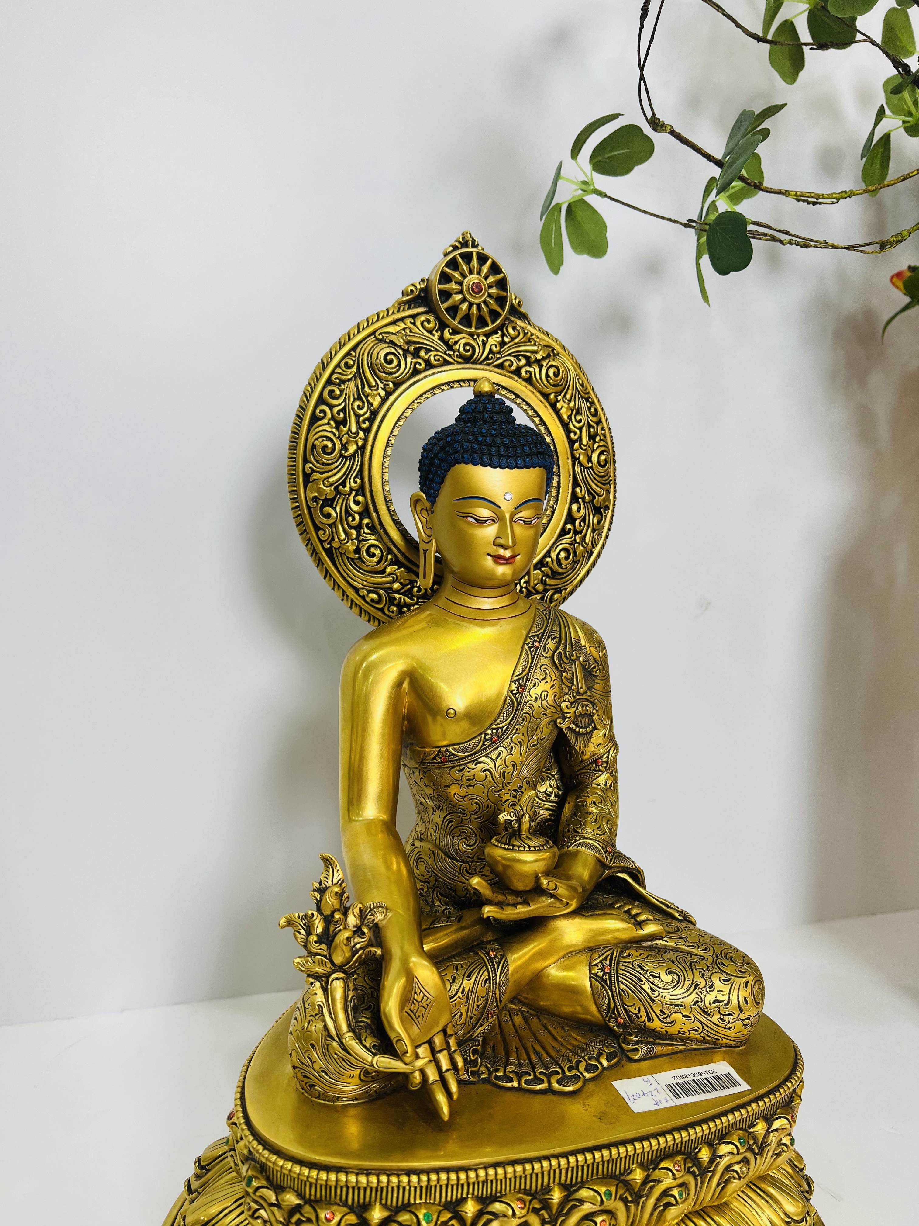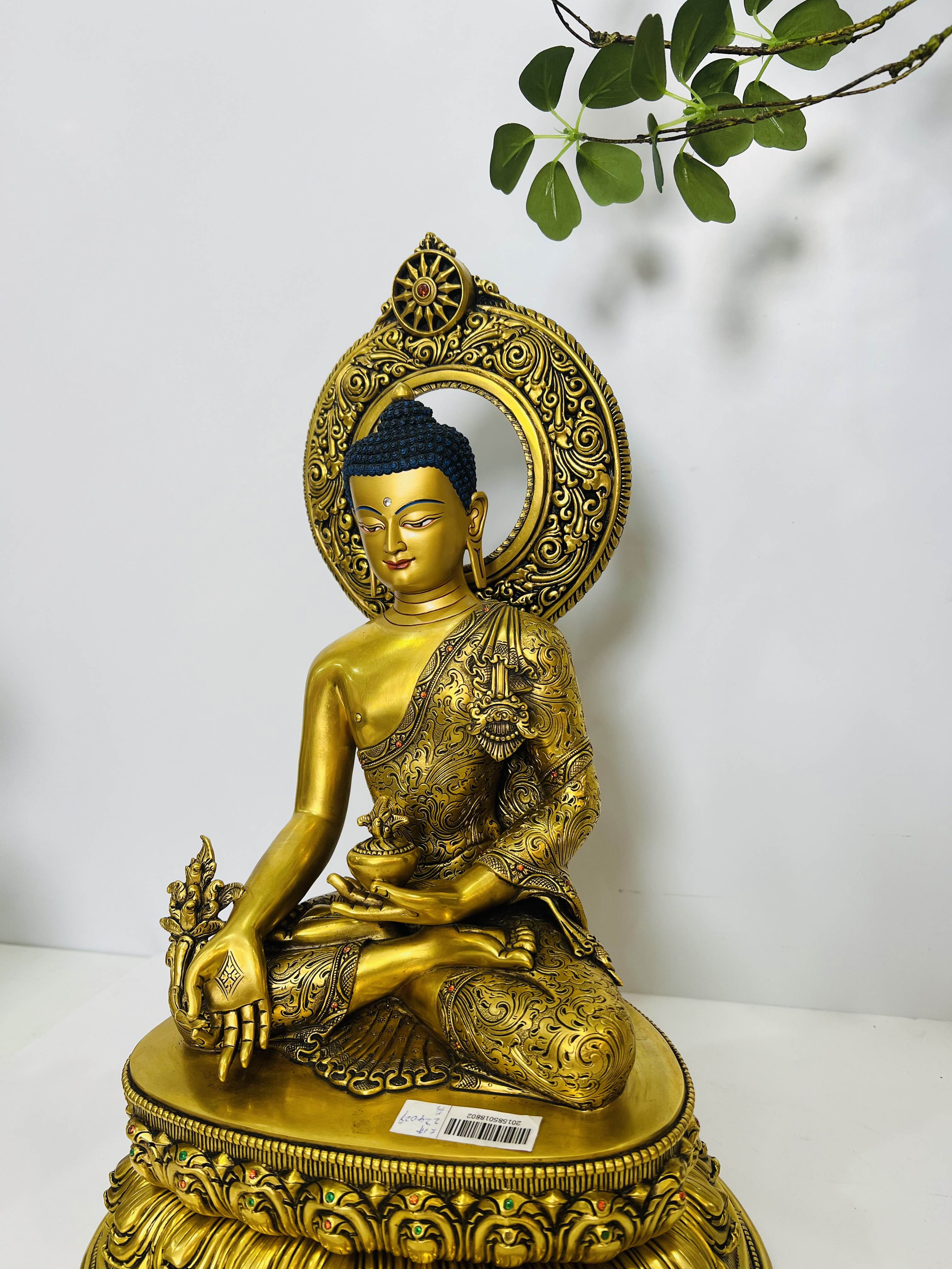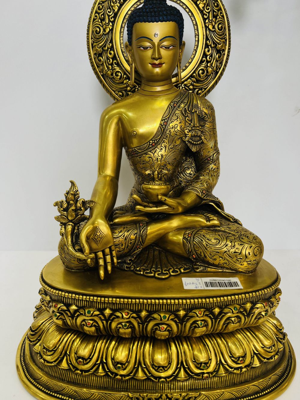 產(chǎn)地:尼泊爾 工藝:紫銅 創(chuàng)作年份:2023 題材:藥師佛 繪制時(shí)間:0日 尺寸:38cm 重量:0 g 材質(zhì):紫銅 使用場地: