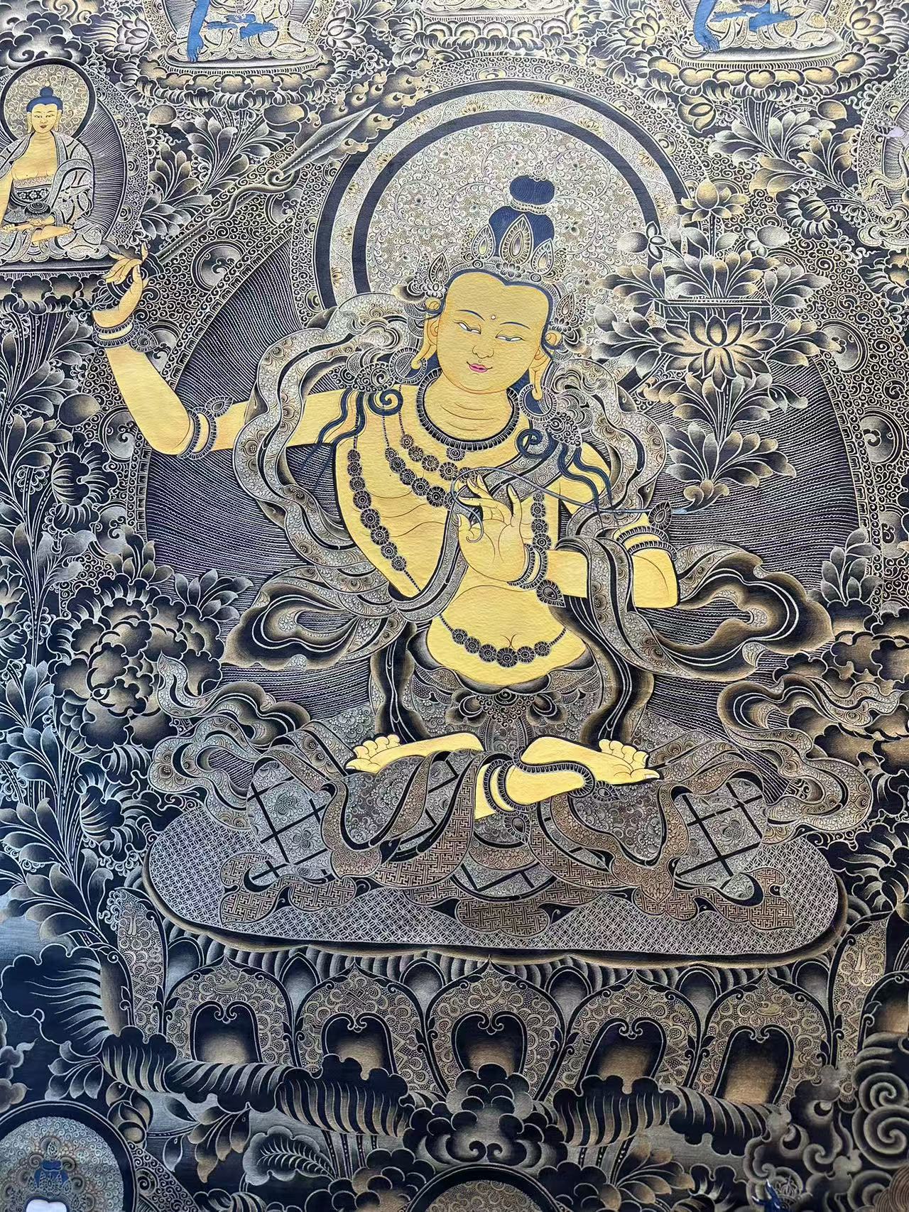 ![]() | 唐卡很美,我們希望讓唐卡走進大家的生活,所以我們開設(shè)了唐卡定制的服務(wù)平臺。我們有唐卡原產(chǎn)地的幾十位畫師,他們都是從事唐卡繪畫十幾年甚至幾十年的畫師,對于唐卡的理解非常深厚,掌握唐卡繪畫的各種技巧,他們繪制的唐卡已經(jīng)得到業(yè)內(nèi)外許多人士的認可。我們結(jié)合資深畫師的繪畫功力和專業(yè)藏品顧問的敬業(yè)精神,來回報您的信任和選擇。 |