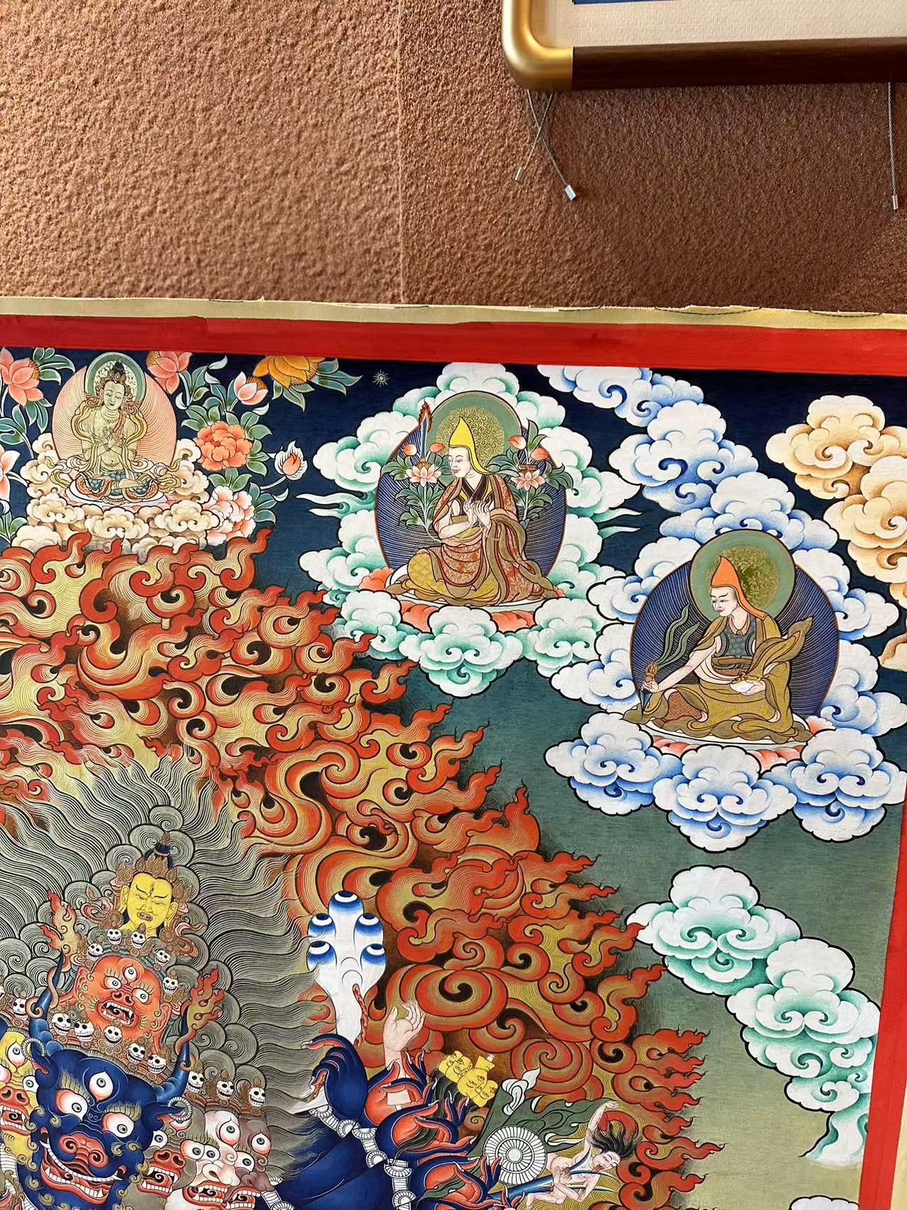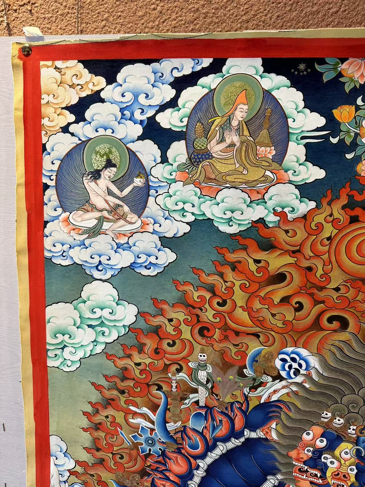 | 唐卡是歷史的瑰寶,現(xiàn)已被例入國家非物質(zhì)文化遺產(chǎn)名錄,得到了高度的重視和保護(hù)。同時(shí)由于顏料的珍稀、繪制周期長(zhǎng)、工藝復(fù)雜大大增強(qiáng)了其珍藏價(jià)值。一幅好的作品可遇不可求,近年來唐卡已成為收藏界炙手可熱的藏品。 | 唐卡的形式便于攜帶,其內(nèi)容體現(xiàn)了藏傳佛教的莊重、神圣、華貴,被稱為“移動(dòng)的佛像”。同時(shí)也是修行者積累善業(yè),追尋心靈的平靜與安寧的一個(gè)過程。 | 唐卡的內(nèi)容包羅萬象,它以圖像的方式承載著藏族文化精髓,是藏族智慧的結(jié)晶,廣泛傳播了藏地的文化、歷史和宗教理論。 | 唐卡絢麗的色彩、流暢的線條、嚴(yán)謹(jǐn)?shù)慕Y(jié)構(gòu),都充滿著濃郁的高原和游牧民族風(fēng)情,無疑是難得的藝術(shù)珍品。值得一提的是唐卡繪制顏料全部為天然礦物顏料,畫面效果艷麗,可以保存千年而不變色。 |
