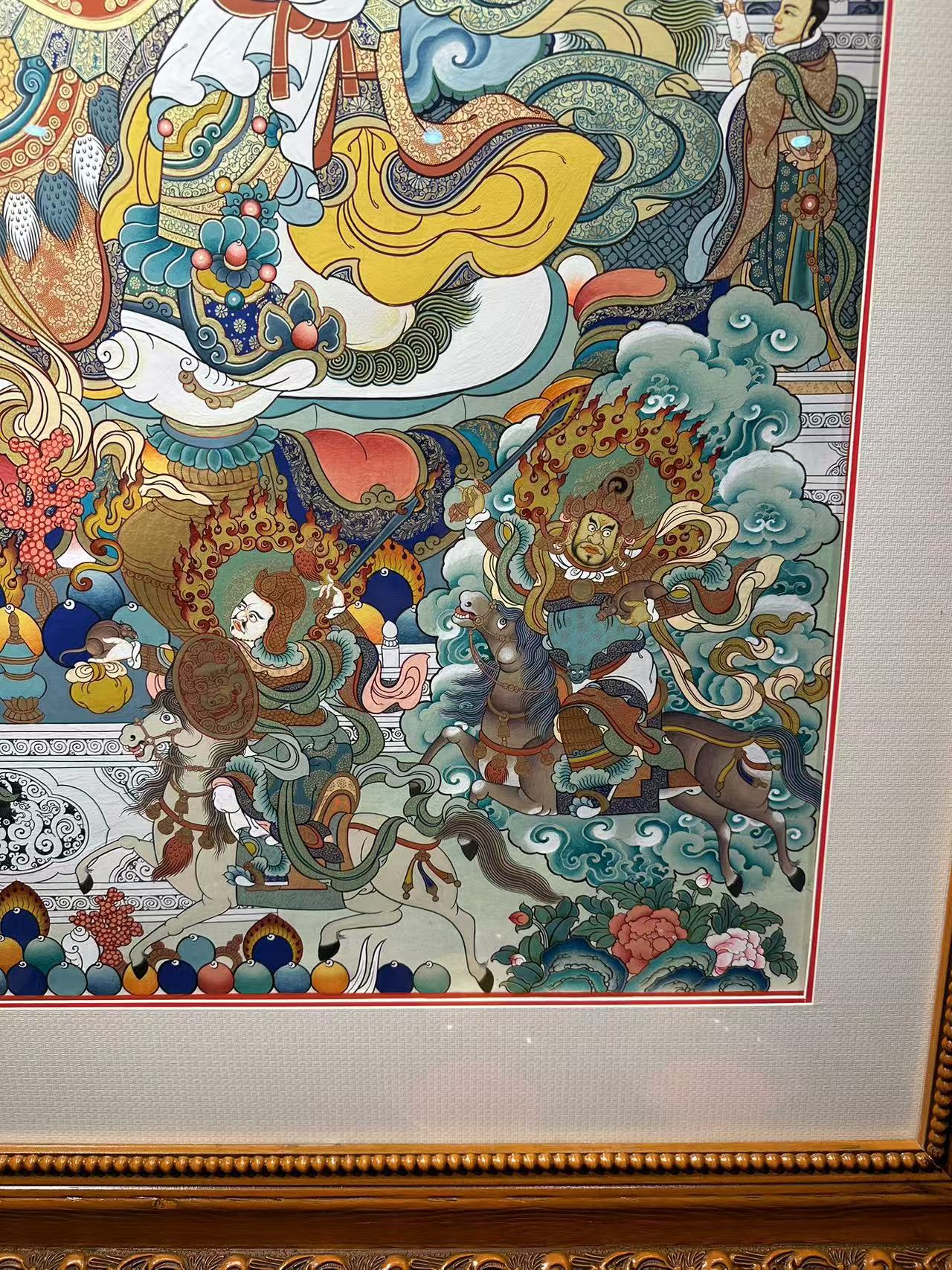 | 唐卡是歷史的瑰寶,現(xiàn)已被例入國(guó)家非物質(zhì)文化遺產(chǎn)名錄,得到了高度的重視和保護(hù)。同時(shí)由于顏料的珍稀、繪制周期長(zhǎng)、工藝復(fù)雜大大增強(qiáng)了其珍藏價(jià)值。一幅好的作品可遇不可求,近年來唐卡已成為收藏界炙手可熱的藏品。 | 唐卡的形式便于攜帶,其內(nèi)容體現(xiàn)了藏傳佛教的莊重、神圣、華貴,被稱為“移動(dòng)的佛像”。同時(shí)也是修行者積累善業(yè),追尋心靈的平靜與安寧的一個(gè)過程。 | 唐卡的內(nèi)容包羅萬(wàn)象,它以圖像的方式承載著藏族文化精髓,是藏族智慧的結(jié)晶,廣泛傳播了藏地的文化、歷史和宗教理論。 | 唐卡絢麗的色彩、流暢的線條、嚴(yán)謹(jǐn)?shù)慕Y(jié)構(gòu),都充滿著濃郁的高原和游牧民族風(fēng)情,無疑是難得的藝術(shù)珍品。值得一提的是唐卡繪制顏料全部為天然礦物顏料,畫面效果艷麗,可以保存千年而不變色。 |