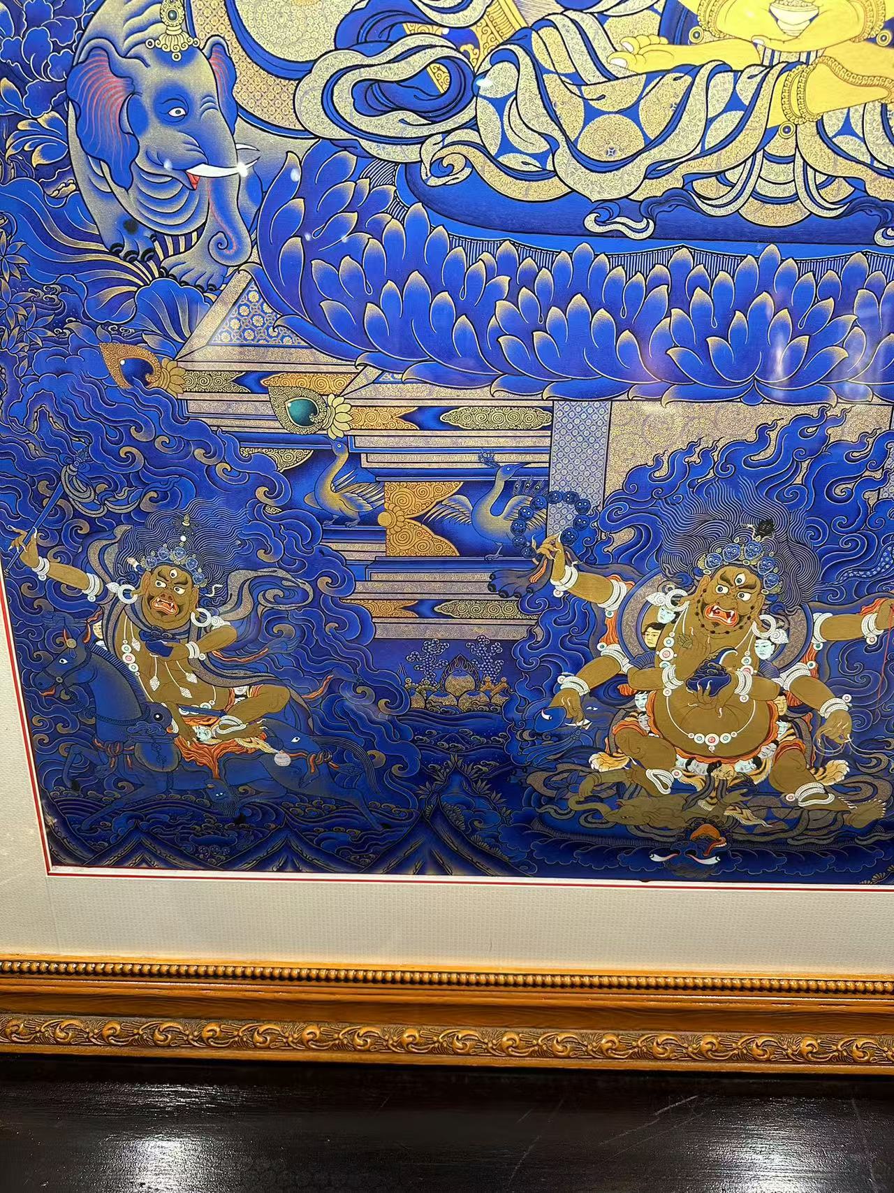 | 唐卡是歷史的瑰寶,現(xiàn)已被例入國(guó)家非物質(zhì)文化遺產(chǎn)名錄,得到了高度的重視和保護(hù)。同時(shí)由于顏料的珍稀、繪制周期長(zhǎng)、工藝復(fù)雜大大增強(qiáng)了其珍藏價(jià)值。一幅好的作品可遇不可求,近年來唐卡已成為收藏界炙手可熱的藏品。 | 唐卡的形式便于攜帶,其內(nèi)容體現(xiàn)了藏傳佛教的莊重、神圣、華貴,被稱為“移動(dòng)的佛像”。同時(shí)也是修行者積累善業(yè),追尋心靈的平靜與安寧的一個(gè)過程。 | 唐卡的內(nèi)容包羅萬(wàn)象,它以圖像的方式承載著藏族文化精髓,是藏族智慧的結(jié)晶,廣泛傳播了藏地的文化、歷史和宗教理論。 | 唐卡絢麗的色彩、流暢的線條、嚴(yán)謹(jǐn)?shù)慕Y(jié)構(gòu),都充滿著濃郁的高原和游牧民族風(fēng)情,無疑是難得的藝術(shù)珍品。值得一提的是唐卡繪制顏料全部為天然礦物顏料,畫面效果艷麗,可以保存千年而不變色。 |