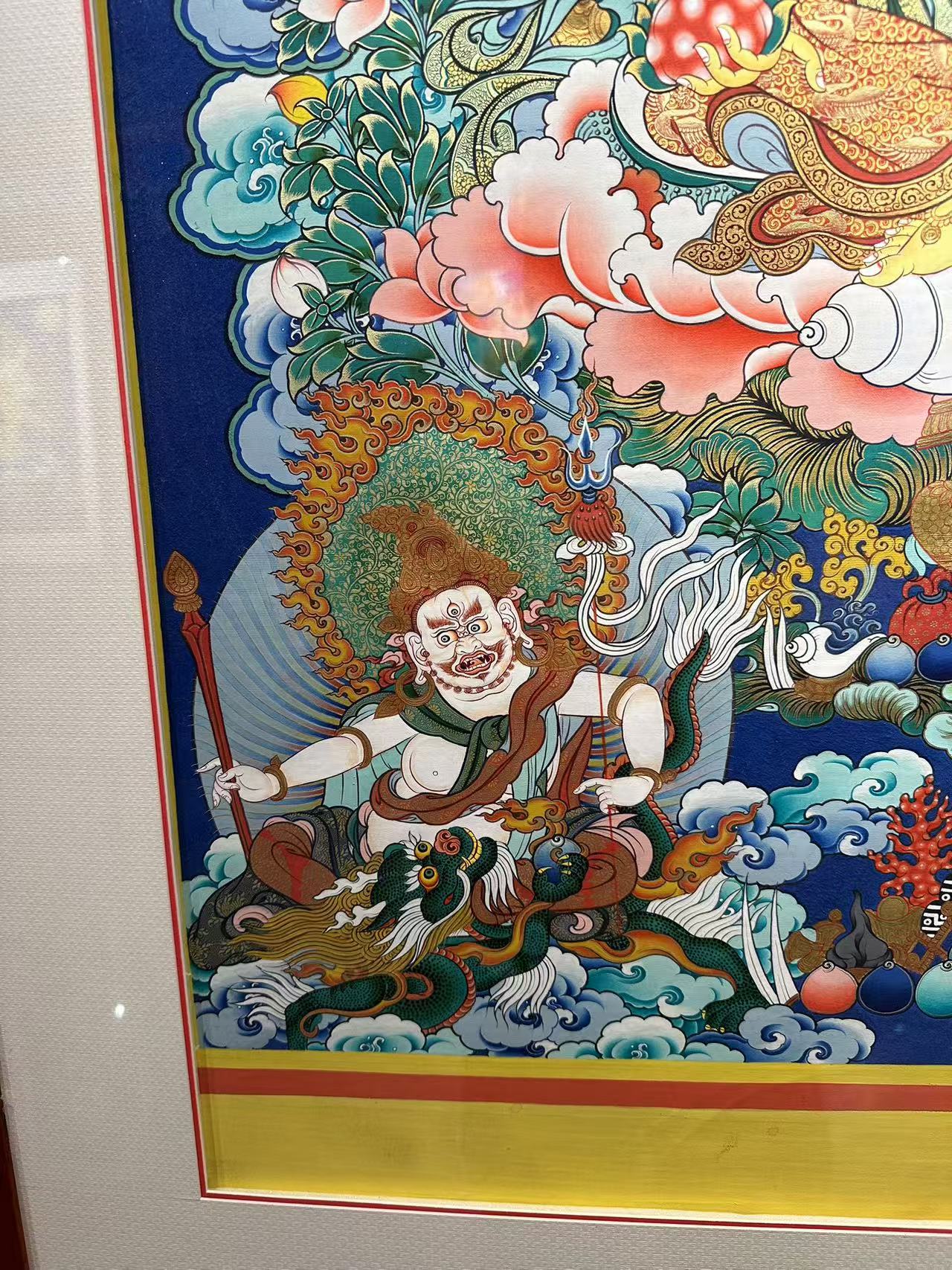 ![]() | 1、唐卡不能放在潮濕的地方,更不能弄到水,像南方不比北方,空氣比較濕潤,所以應將唐卡定期的涼一下,盡量保持干燥,否則會脫色掉色。 |