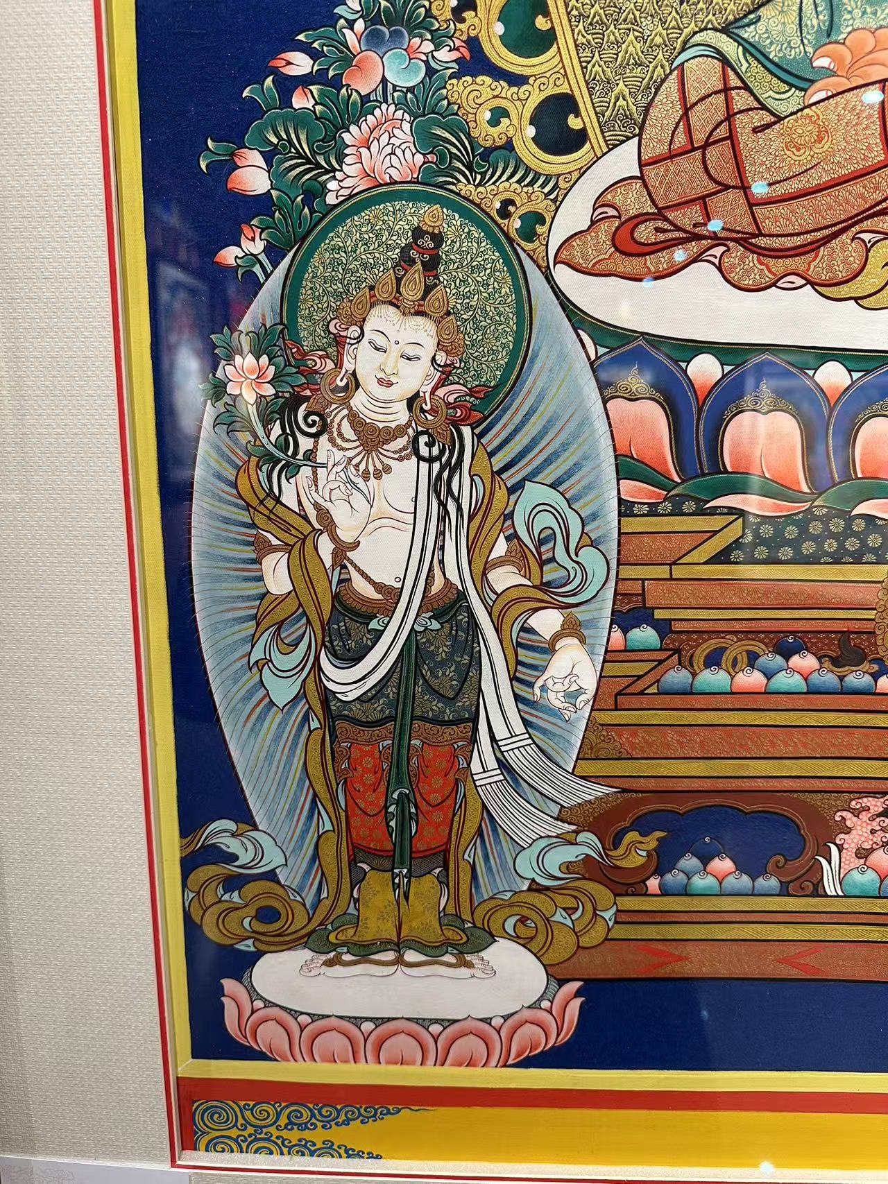 ![]() | 唐卡很美,我們希望讓唐卡走進大家的生活,所以我們開設(shè)了唐卡定制的服務(wù)平臺。我們有唐卡原產(chǎn)地的幾十位畫師,他們都是從事唐卡繪畫十幾年甚至幾十年的畫師,對于唐卡的理解非常深厚,掌握唐卡繪畫的各種技巧,他們繪制的唐卡已經(jīng)得到業(yè)內(nèi)外許多人士的認可。我們結(jié)合資深畫師的繪畫功力和專業(yè)藏品顧問的敬業(yè)精神,來回報您的信任和選擇。 |
