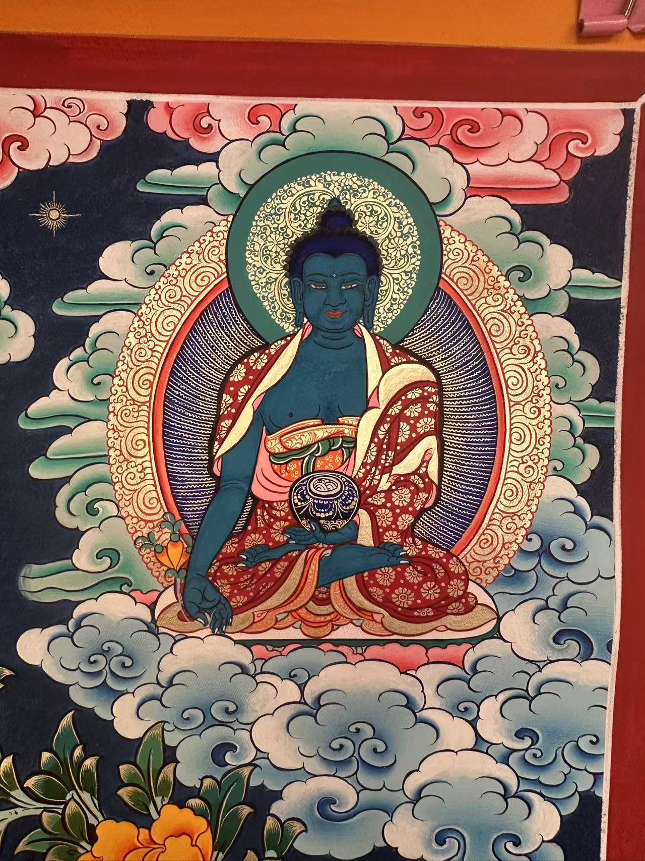 ![]() | 1、唐卡不能放在潮濕的地方,更不能弄到水,像南方不比北方,空氣比較濕潤,所以應(yīng)將唐卡定期的涼一下,盡量保持干燥,否則會脫色掉色。 |