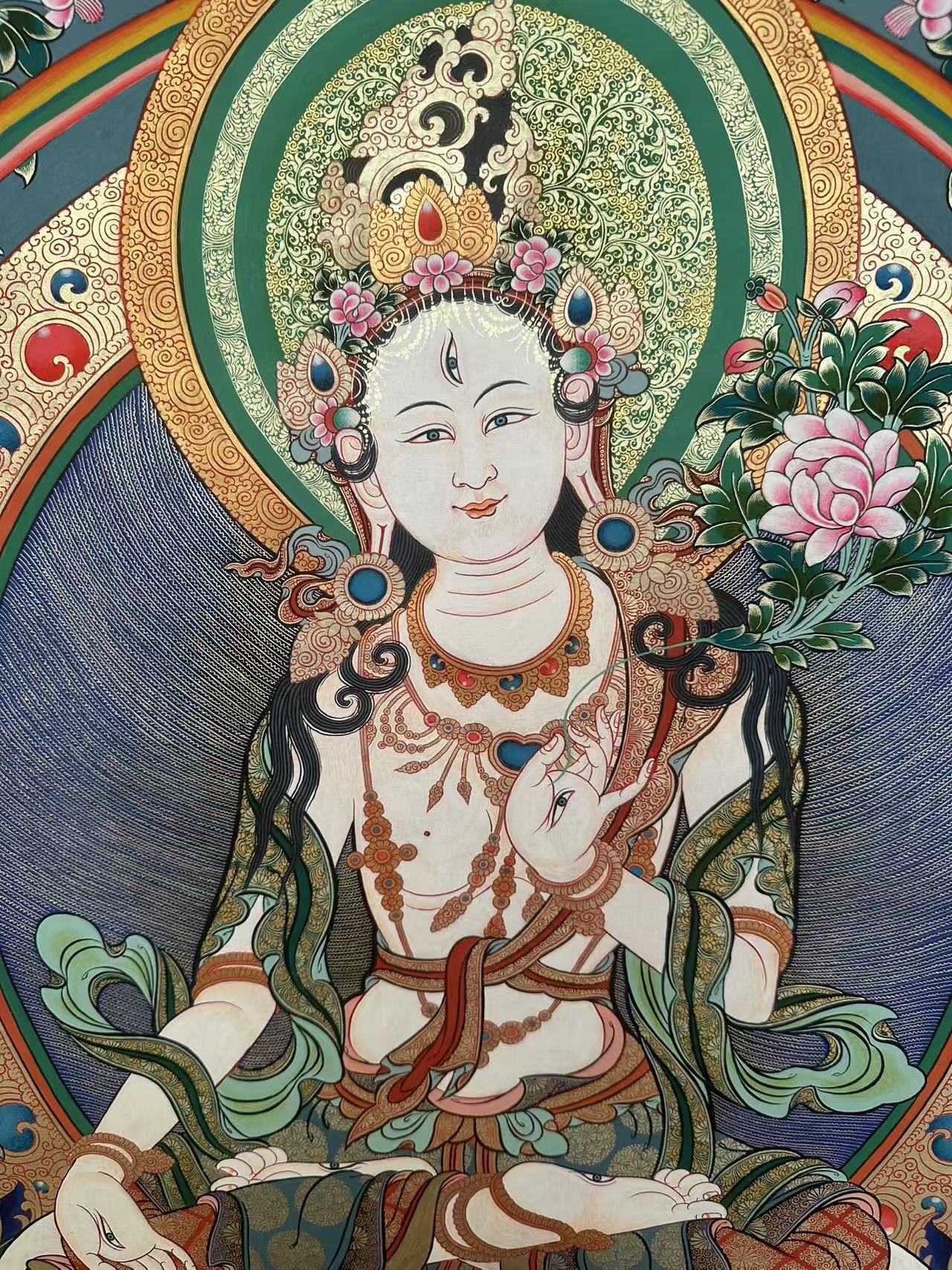 | 唐卡是歷史的瑰寶,現(xiàn)已被例入國家非物質(zhì)文化遺產(chǎn)名錄,得到了高度的重視和保護(hù)。同時由于顏料的珍稀、繪制周期長、工藝復(fù)雜大大增強(qiáng)了其珍藏價值。一幅好的作品可遇不可求,近年來唐卡已成為收藏界炙手可熱的藏品。 | 唐卡的形式便于攜帶,其內(nèi)容體現(xiàn)了藏傳佛教的莊重、神圣、華貴,被稱為“移動的佛像”。同時也是修行者積累善業(yè),追尋心靈的平靜與安寧的一個過程。 | 唐卡的內(nèi)容包羅萬象,它以圖像的方式承載著藏族文化精髓,是藏族智慧的結(jié)晶,廣泛傳播了藏地的文化、歷史和宗教理論。 | 唐卡絢麗的色彩、流暢的線條、嚴(yán)謹(jǐn)?shù)慕Y(jié)構(gòu),都充滿著濃郁的高原和游牧民族風(fēng)情,無疑是難得的藝術(shù)珍品。值得一提的是唐卡繪制顏料全部為天然礦物顏料,畫面效果艷麗,可以保存千年而不變色。 |