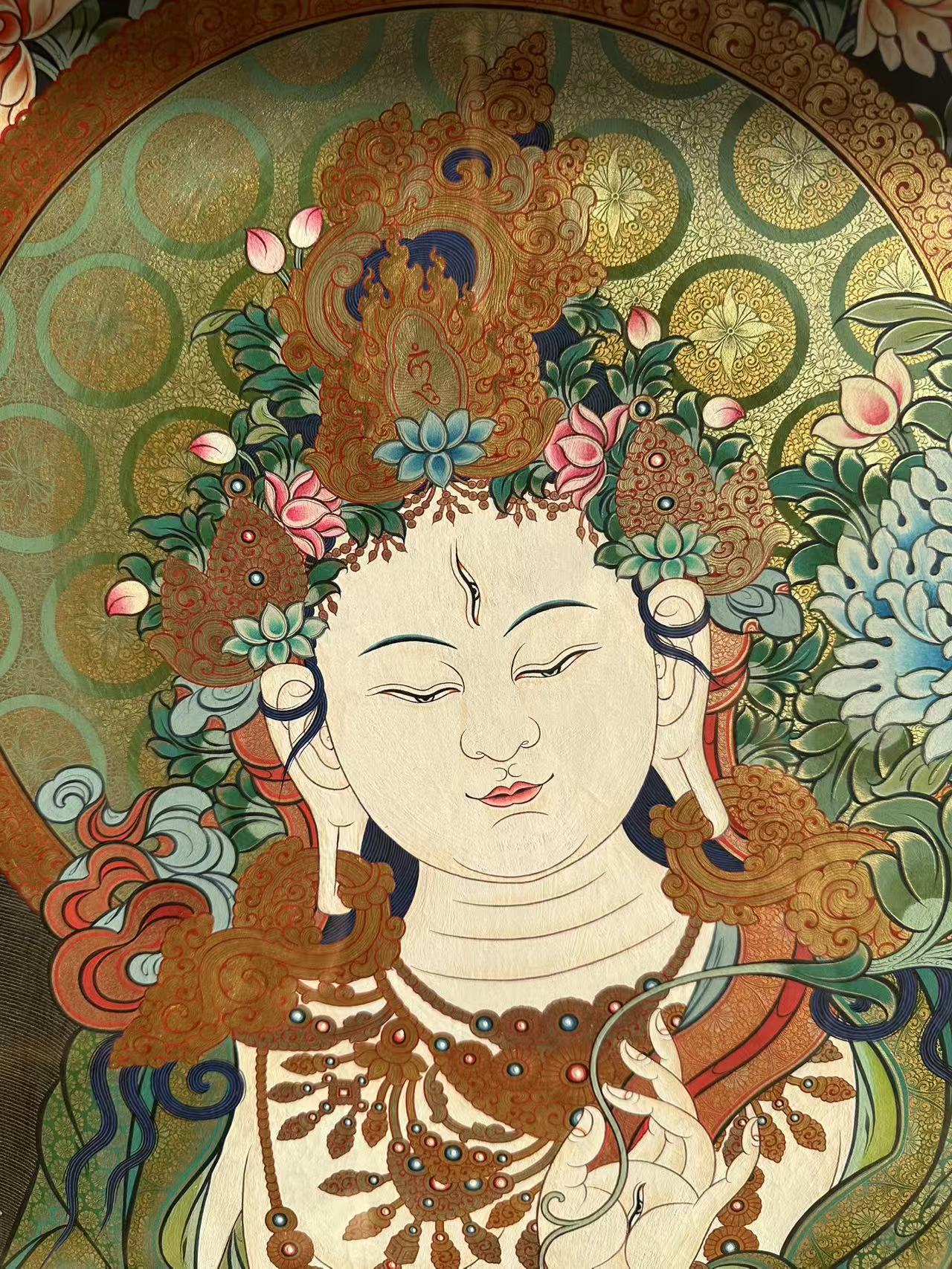 | 唐卡“師傅”開臉,筆路穩(wěn)重流暢。體現完美天人相,可見佛菩薩慈眉善目,賦予唐卡畫像生的靈氣。 | 細節(jié)決定品質,點睛之筆不到位影響整體美觀,五官比例不協調,面目呆板,缺乏靈氣。 |