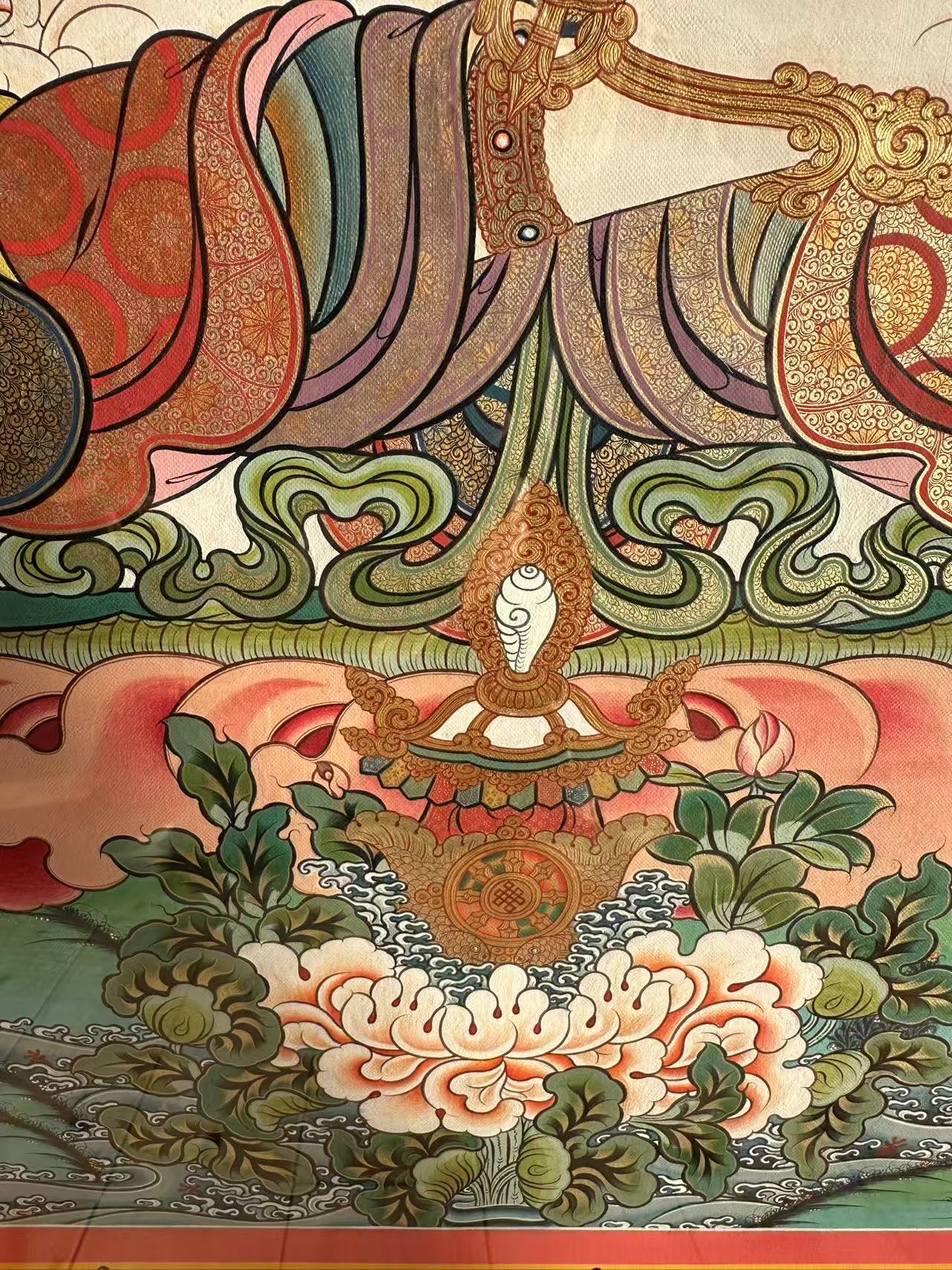 | 唐卡是歷史的瑰寶,現已被例入國家非物質文化遺產名錄,得到了高度的重視和保護。同時由于顏料的珍稀、繪制周期長、工藝復雜大大增強了其珍藏價值。一幅好的作品可遇不可求,近年來唐卡已成為收藏界炙手可熱的藏品。 | 唐卡的形式便于攜帶,其內容體現了藏傳佛教的莊重、神圣、華貴,被稱為“移動的佛像”。同時也是修行者積累善業(yè),追尋心靈的平靜與安寧的一個過程。 | 唐卡的內容包羅萬象,它以圖像的方式承載著藏族文化精髓,是藏族智慧的結晶,廣泛傳播了藏地的文化、歷史和宗教理論。 | 唐卡絢麗的色彩、流暢的線條、嚴謹的結構,都充滿著濃郁的高原和游牧民族風情,無疑是難得的藝術珍品。值得一提的是唐卡繪制顏料全部為天然礦物顏料,畫面效果艷麗,可以保存千年而不變色。 |