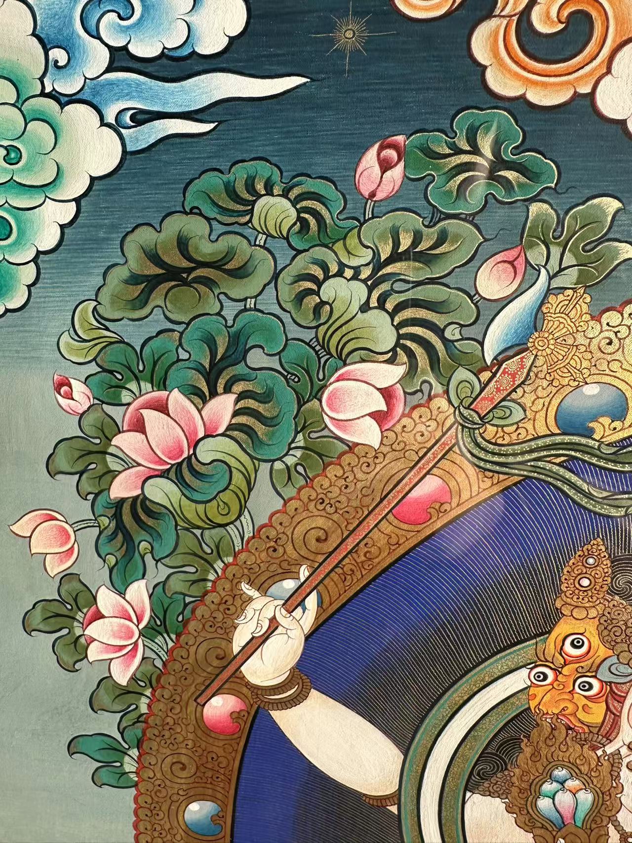 | 唐卡是歷史的瑰寶,現(xiàn)已被例入國家非物質文化遺產(chǎn)名錄,得到了高度的重視和保護。同時由于顏料的珍稀、繪制周期長、工藝復雜大大增強了其珍藏價值。一幅好的作品可遇不可求,近年來唐卡已成為收藏界炙手可熱的藏品。 | 唐卡的形式便于攜帶,其內容體現(xiàn)了藏傳佛教的莊重、神圣、華貴,被稱為“移動的佛像”。同時也是修行者積累善業(yè),追尋心靈的平靜與安寧的一個過程。 | 唐卡的內容包羅萬象,它以圖像的方式承載著藏族文化精髓,是藏族智慧的結晶,廣泛傳播了藏地的文化、歷史和宗教理論。 | 唐卡絢麗的色彩、流暢的線條、嚴謹?shù)慕Y構,都充滿著濃郁的高原和游牧民族風情,無疑是難得的藝術珍品。值得一提的是唐卡繪制顏料全部為天然礦物顏料,畫面效果艷麗,可以保存千年而不變色。 |