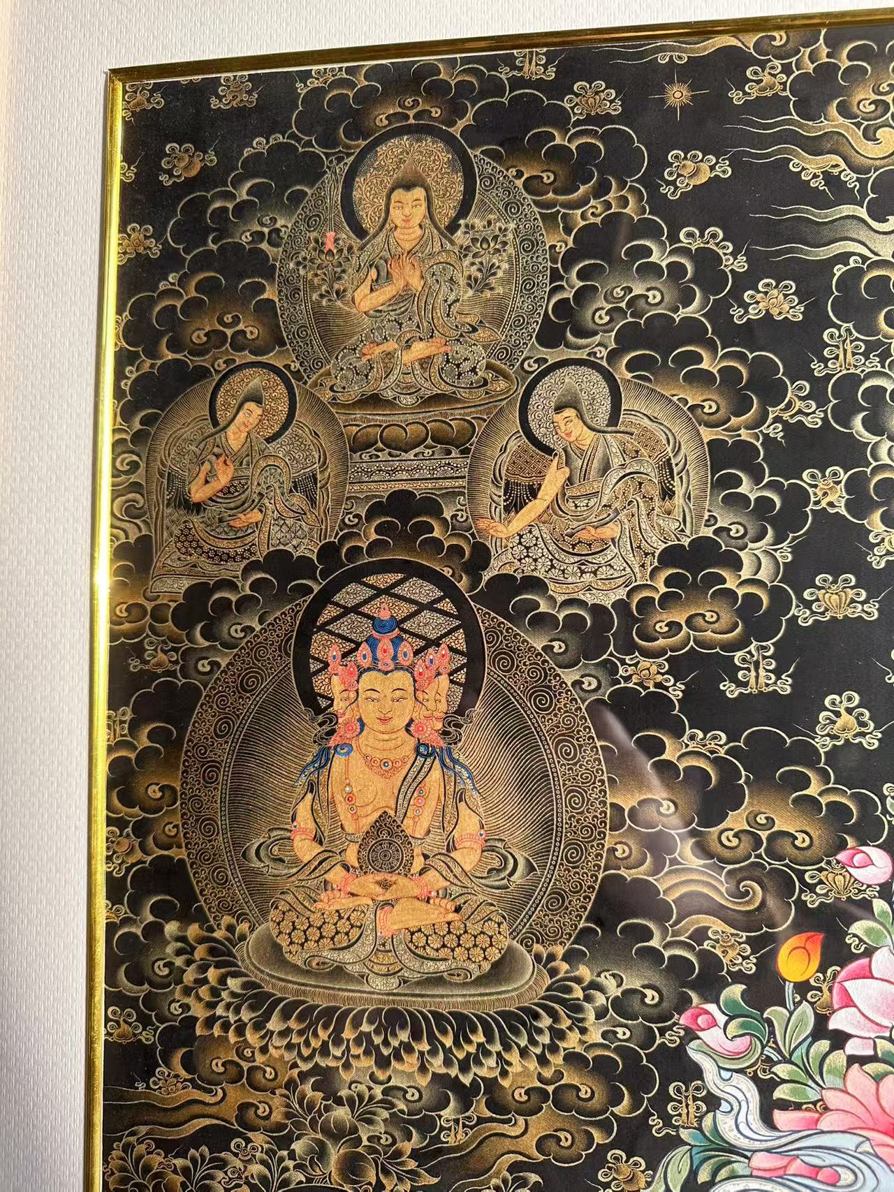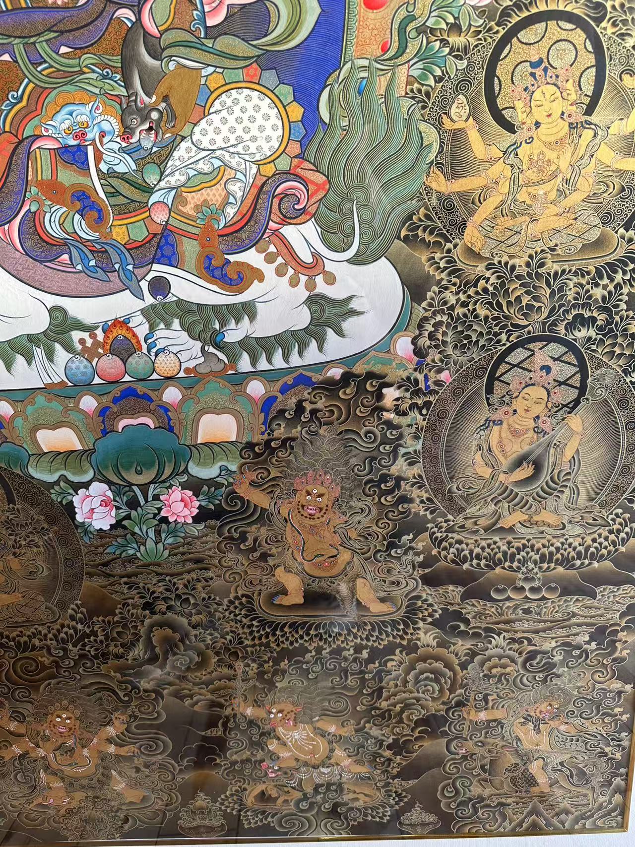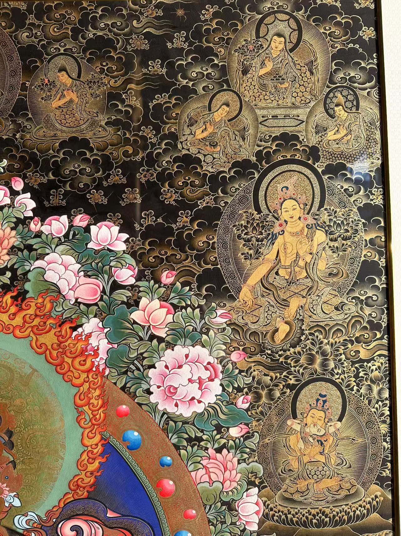 | 唐卡是歷史的瑰寶,現(xiàn)已被例入國家非物質(zhì)文化遺產(chǎn)名錄,得到了高度的重視和保護。同時由于顏料的珍稀、繪制周期長、工藝復雜大大增強了其珍藏價值。一幅好的作品可遇不可求,近年來唐卡已成為收藏界炙手可熱的藏品。 | 唐卡的形式便于攜帶,其內(nèi)容體現(xiàn)了藏傳佛教的莊重、神圣、華貴,被稱為“移動的佛像”。同時也是修行者積累善業(yè),追尋心靈的平靜與安寧的一個過程。 | 唐卡的內(nèi)容包羅萬象,它以圖像的方式承載著藏族文化精髓,是藏族智慧的結(jié)晶,廣泛傳播了藏地的文化、歷史和宗教理論。 | 唐卡絢麗的色彩、流暢的線條、嚴謹?shù)慕Y(jié)構(gòu),都充滿著濃郁的高原和游牧民族風情,無疑是難得的藝術(shù)珍品。值得一提的是唐卡繪制顏料全部為天然礦物顏料,畫面效果艷麗,可以保存千年而不變色。 |