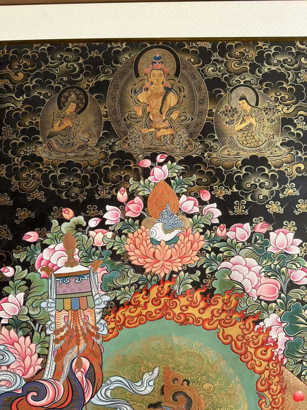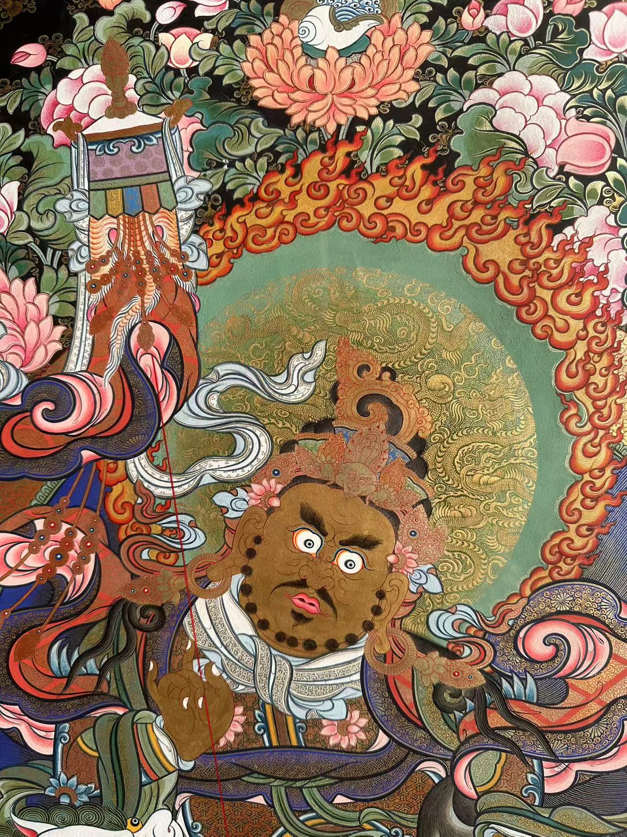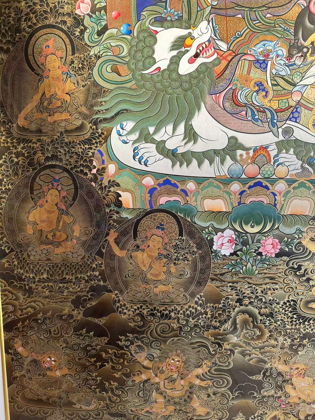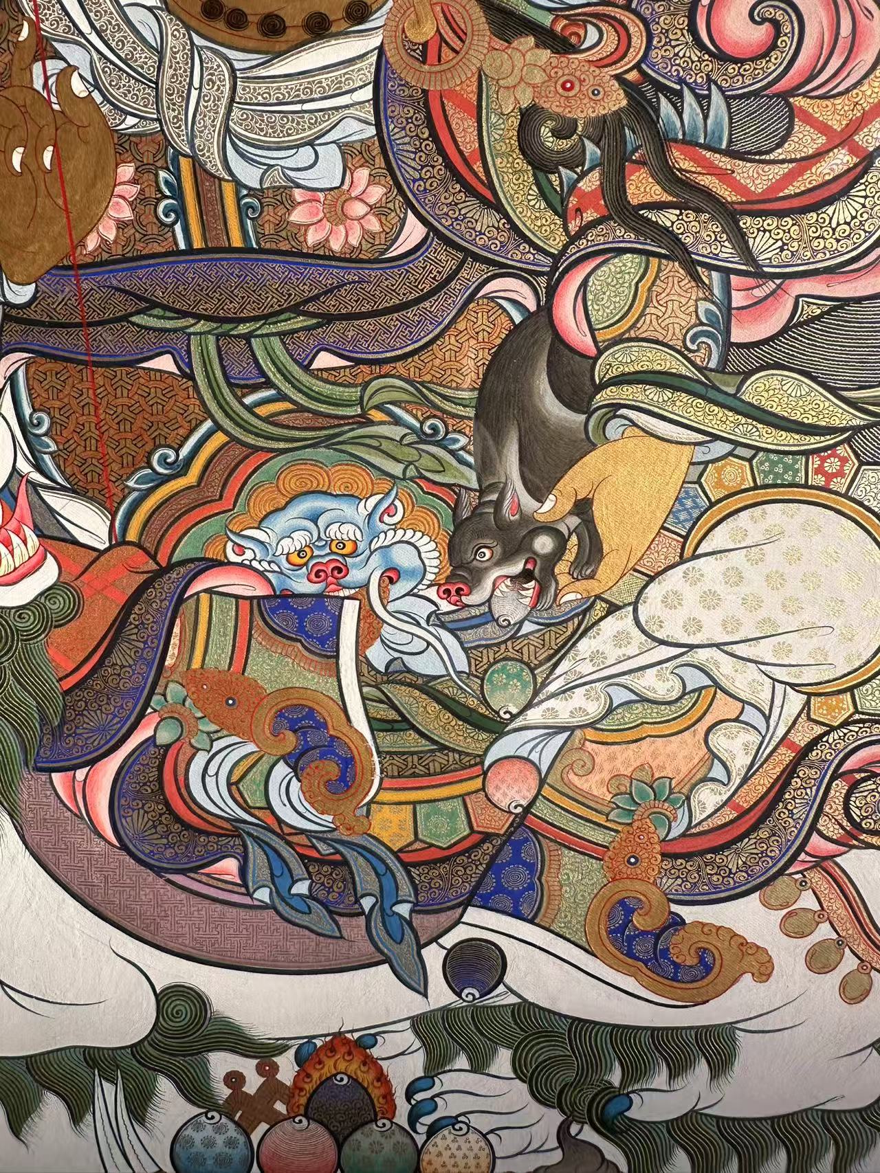 | 唐卡是歷史的瑰寶,現(xiàn)已被例入國家非物質(zhì)文化遺產(chǎn)名錄,得到了高度的重視和保護。同時由于顏料的珍稀、繪制周期長、工藝復雜大大增強了其珍藏價值。一幅好的作品可遇不可求,近年來唐卡已成為收藏界炙手可熱的藏品。 | 唐卡的形式便于攜帶,其內(nèi)容體現(xiàn)了藏傳佛教的莊重、神圣、華貴,被稱為“移動的佛像”。同時也是修行者積累善業(yè),追尋心靈的平靜與安寧的一個過程。 | 唐卡的內(nèi)容包羅萬象,它以圖像的方式承載著藏族文化精髓,是藏族智慧的結(jié)晶,廣泛傳播了藏地的文化、歷史和宗教理論。 | 唐卡絢麗的色彩、流暢的線條、嚴謹?shù)慕Y(jié)構(gòu),都充滿著濃郁的高原和游牧民族風情,無疑是難得的藝術(shù)珍品。值得一提的是唐卡繪制顏料全部為天然礦物顏料,畫面效果艷麗,可以保存千年而不變色。 |
